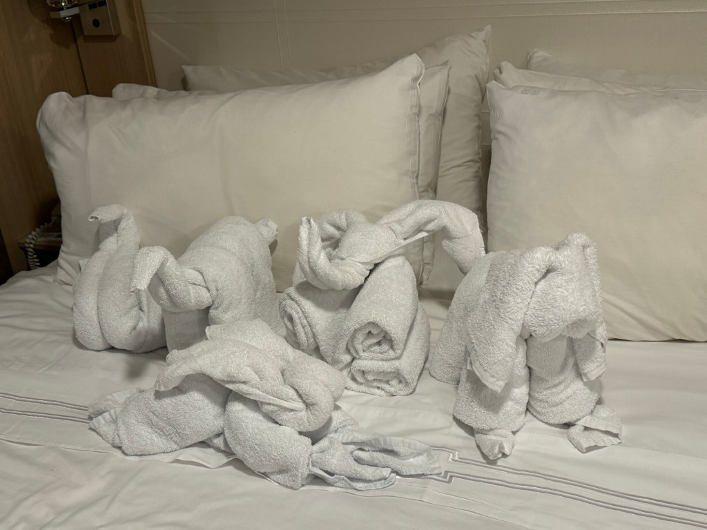 After dinner, Graham headed back to the cabin while I went back to the jewellery store. This time Jo was there. She loved the necklace and thanked me for remembering to come by. Then I headed back to the cabin, too. I changed the time on my gadgets and then I got ready for bed. I read for a bit, but soon I went to sleep. Things had felt quite calm walking around the ship, but when I lay down, it was obvious that the ship was still bouncing quite a bit. However, this just rocked me to sleep.