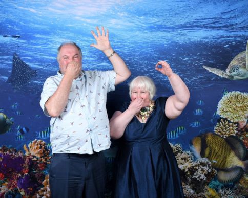 We still had some time and decided to get some photos before heading for the final trivia of the day. They had a backdrop out with an underwater scene with a blacktip reef shark. I met one of those when I learned to snorkel. Graham pointed it out. The photographer picked up on this and managed to get a photo that looks like I am touching the shark. I absolutely loved it. I ended up getting a print of this. Graham had this photo turned into a crystal block as a Christmas present for me.