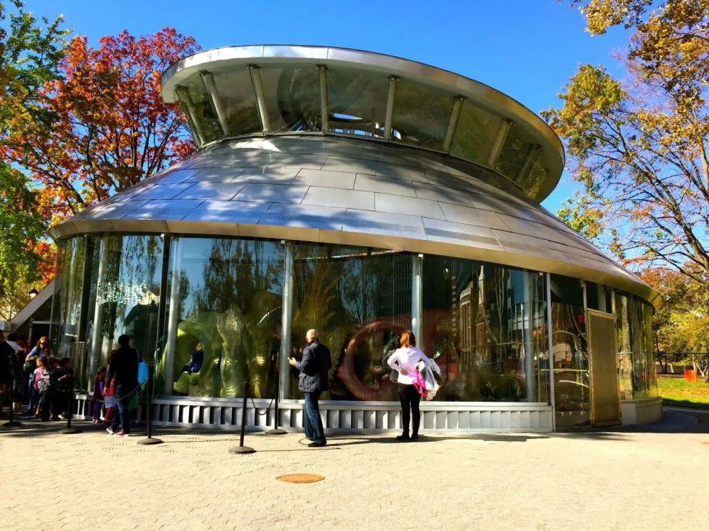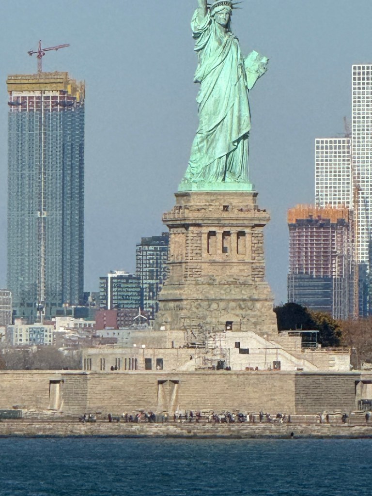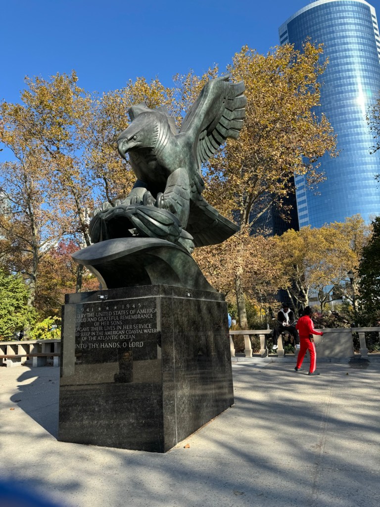 The ferry terminal in Manhattan is on the southern tip and it is opposite Battery Park. Some novels that I had read that were set in New York mentioned Battery Park and it was therefore on my radar. Graham figured it would be worse checking out as there is a famous carousel in there. The SeaGlass Carousel was proposed in 2007 and opened in 2015. At a cost $16 million, this may well have been the most expensive carousel I have ever seen. The carousel is designed to resemble an under-the-sea garden through which visitors ride on fish that appear to be made of sea glass and shimmer as though they were bioluminescent. I would have loved to check this out, but unfortunately during the winter months, it is only open on weekends and public holidays. However, the building is an attraction in its own right. There is also a sculpture trail in Battery Park, and we saw some of the sculptures. The little detour was definitely worth it.