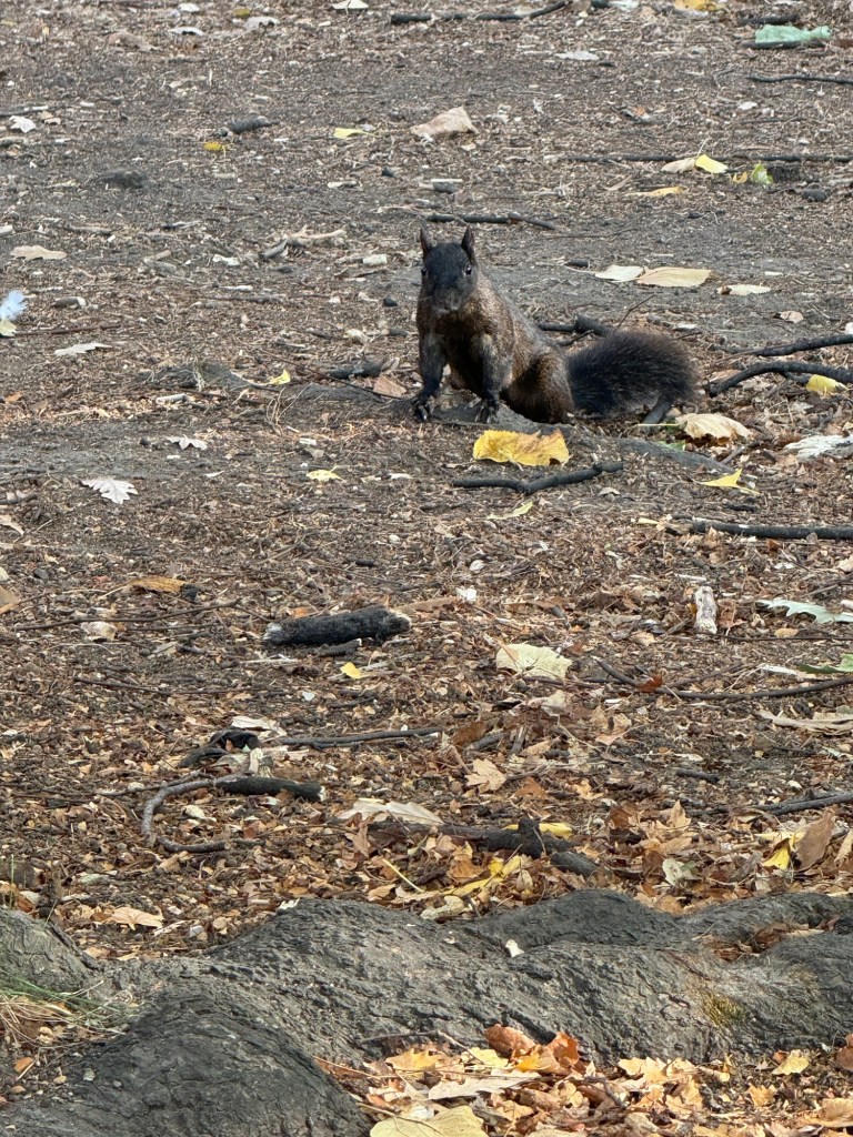 We may have made an error there. The subway station there is an absolute rabbit warren. We ended up going up and down numerous stairs and along platforms. We were just about to give up when I realised that we were right above the platform we needed to be on. Fortunately, just as we came down the staircase, the train we needed pulled in. This took us to Central Park North. When we visited Central Park in 2016, we entered from the south end. I still prefer the southern half, but I am glad that I got to experience both ends. The northern end mainly consists of green spaces and various lakes and ponds whereas on the southern end there are all kinds of interesting buildings and structures. On our wanders, we encountered black squirrels. In certain parts of Germany, there are black squirrels, but they are nothing like the black squirrels in Central Park. The black squirrels in Germany are the more timid cousin of the red squirrel. The black squirrels in Central Park were feisty. We watched then chasing grey squirrels away.