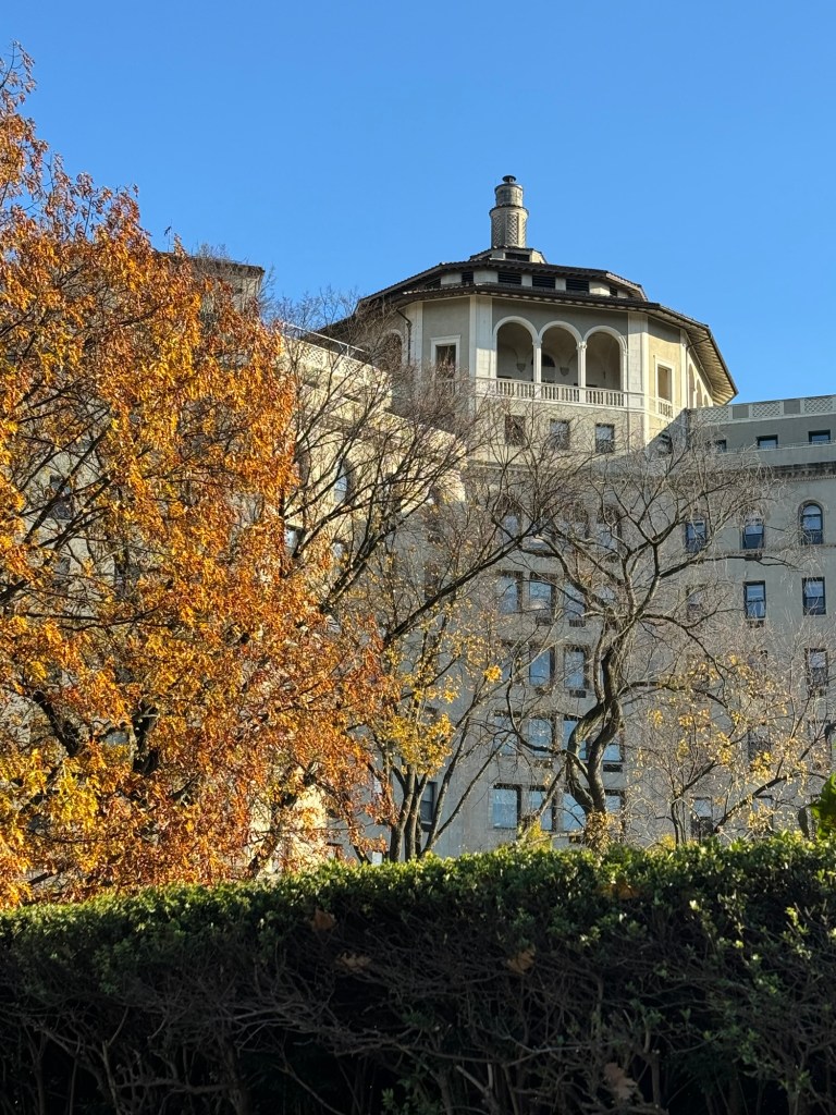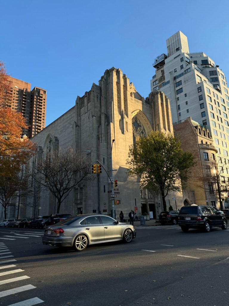 As we were approaching the bottom end of the reservoir, Graham spotted a beautiful church out on 5th Avenue. He asked if I wanted to check this out. I was all for that. The sun was starting to go down and I had done enough walking for the day. We left Central Park and crossed the road. The church he had spotted was Church of the Heavenly Rest. In US terms, this is quite an old church that was founded in 1865. Its name was meant to be a memorial to soldiers that lost their lives in the Civil War. The present church building is relatively recent and was completed in 1929. The style is referred to as Gothic Deco. It is quite a dark space when you first come it. However, when your eyes adapt you realise just how beautiful this is. The main highlight is the stunning art deco stained-glass windows. From the very beginning, the church has provided food, shelter and support to the needy. The congregation today prides itself on being fully inclusive and a big supporter of the arts.