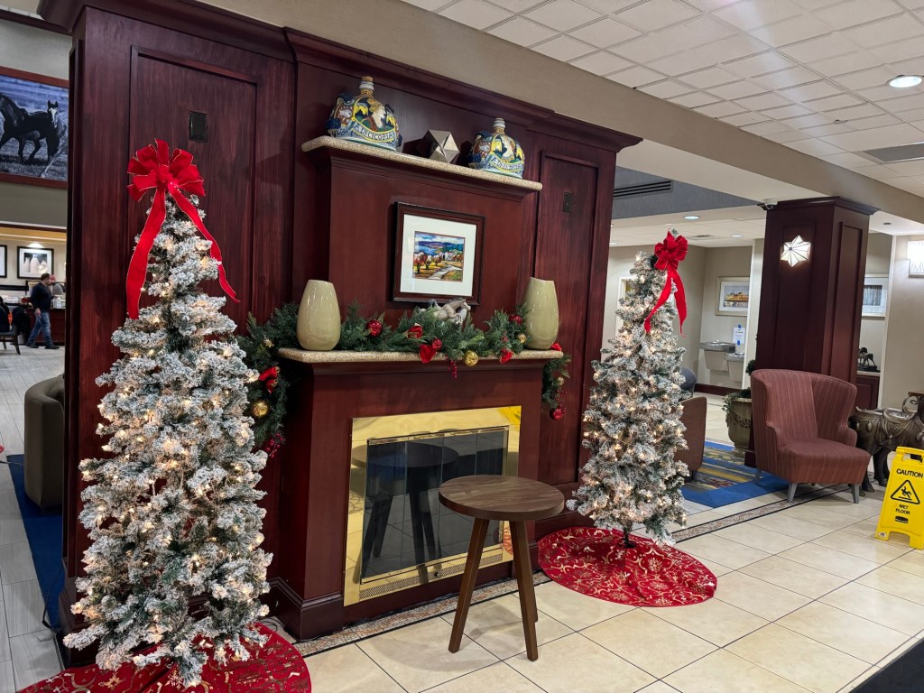 By the time I came back, I was ready for a snack. There was a Starbucks not too far way. I got a white chocolate peppermint mocha for Graham and a sugar cookie cold brew for me. I also got us a slice of cinnamon coffee cake each. By the time we had finished our snack, it was nearly time to board. We moved closer to our gate. Soon boarding started and it was a pretty smooth process. It did not take long until boarding was complete.