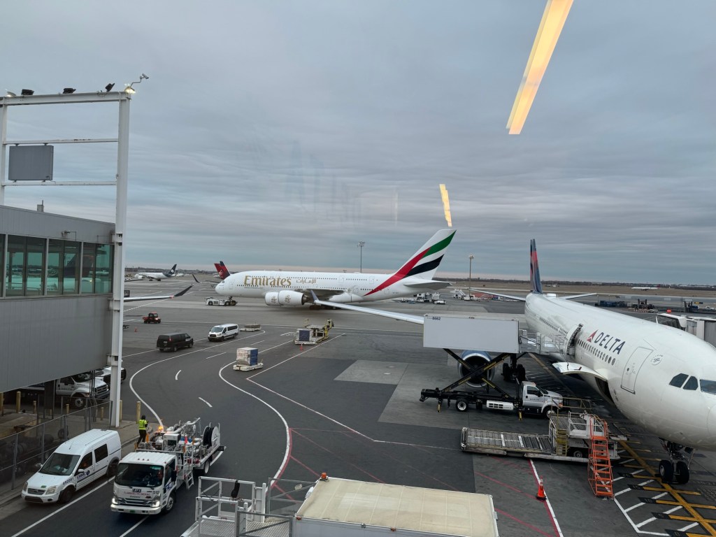 The previous day, I had decided to book a transfer to the airport. About half an hour before the transfer was due, we gathered up our stuff and went downstairs to check out. We then went to sit on the bench near the antique stagecoach. Our transfer arrived exactly on time, and we had a fairly smooth run to New York JFK airport. Our flight was not until the evening, but this is one of the more difficult airport to get to and as much as I would have loved to spend a bit more time in New York, this was just not practical. When we got to the airport, we checked out the lay of the land and then we found some seats.