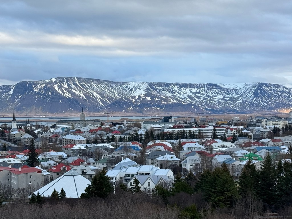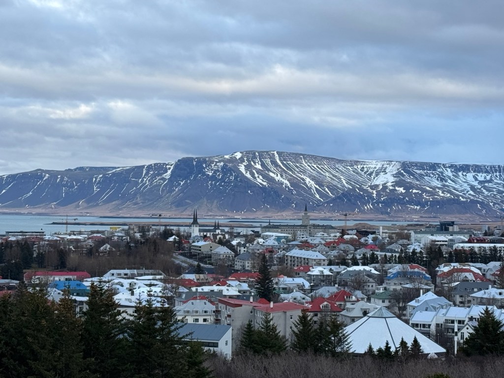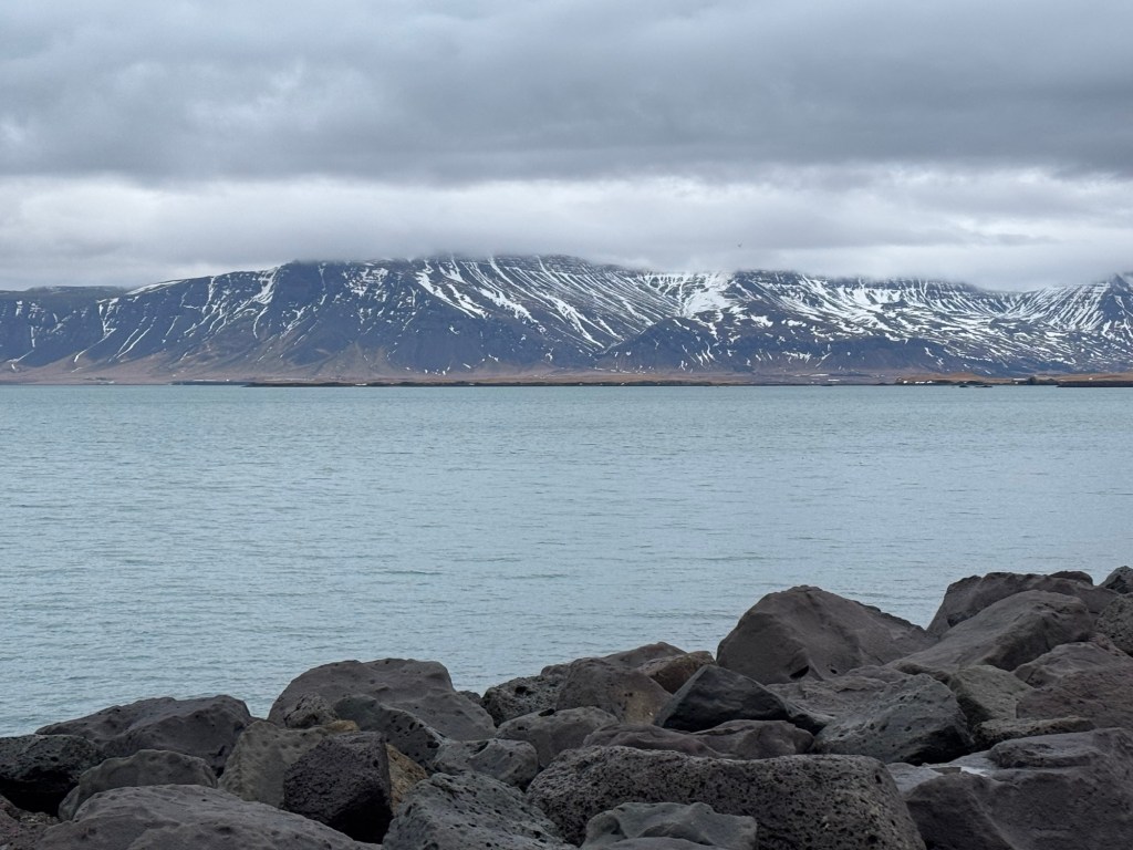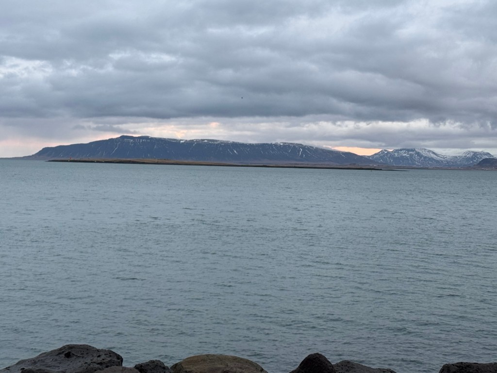 After breakfast, we headed back to the room to put some extra layers on and to get what we needed for the day. Then we headed out. We walked along the coastal path again. There were some beautiful mountains across the bay. We had not seen them the previous afternoon as they had been completely covered in cloud. This time round, there were not many birds about and we made quite quick progress. We had just missed a hop on hop off bus and the next was due 30 minutes later. As it was quite cold outside, we decided to check out the inside of the Harpa concert hall. This was not very interesting, and we left again. Shortly afterwards, the bus arrived, and we got on.