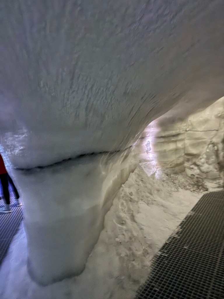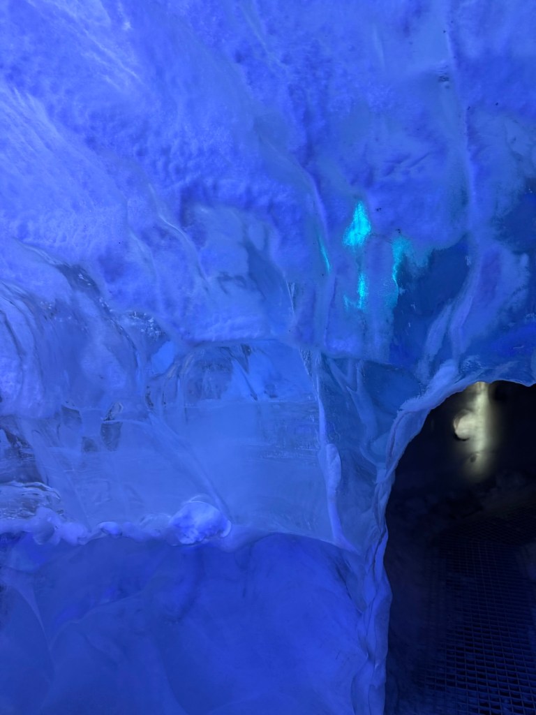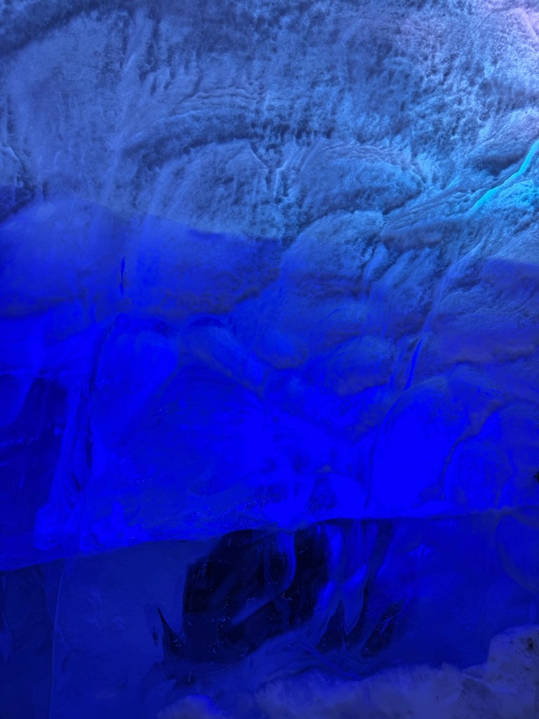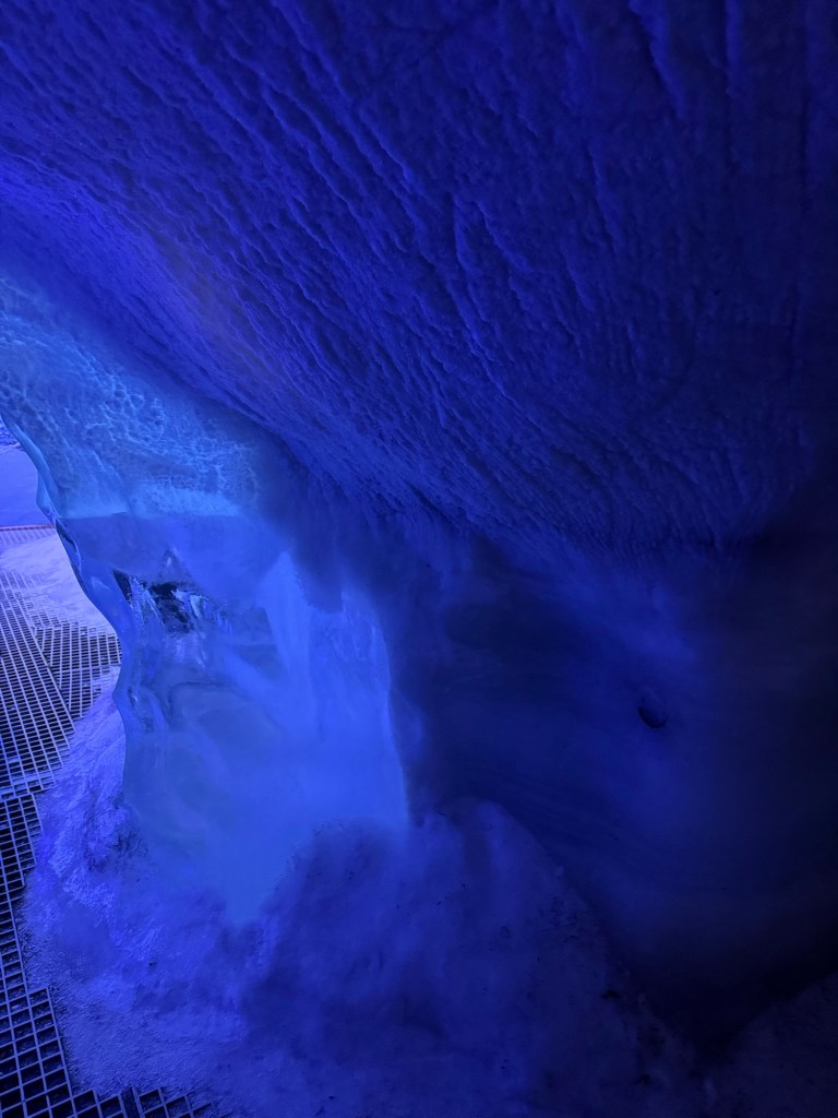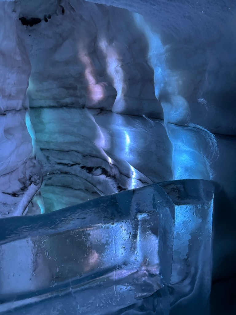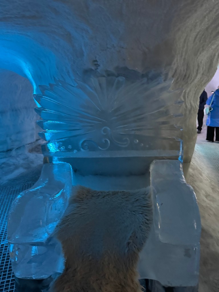 During the winter, ice caves pop up all over Iceland. They can pop up on one day and be gone the next as they are quite unstable. As fascinating as I find the idea, this is just a little too thrilling for my liking. This was the next best thing. It gave us an impression of what it is like, but in a safe and controlled environment. It is 100 meters long and built with over 350 tons of snow from the Blue Mountains. I found this utterly fascinating. There was a main cave and then there were smaller caves off to the sides that you could explore. There was also a carved ice throne, and Graham took a photo of me while I channelled my inner Elsa.