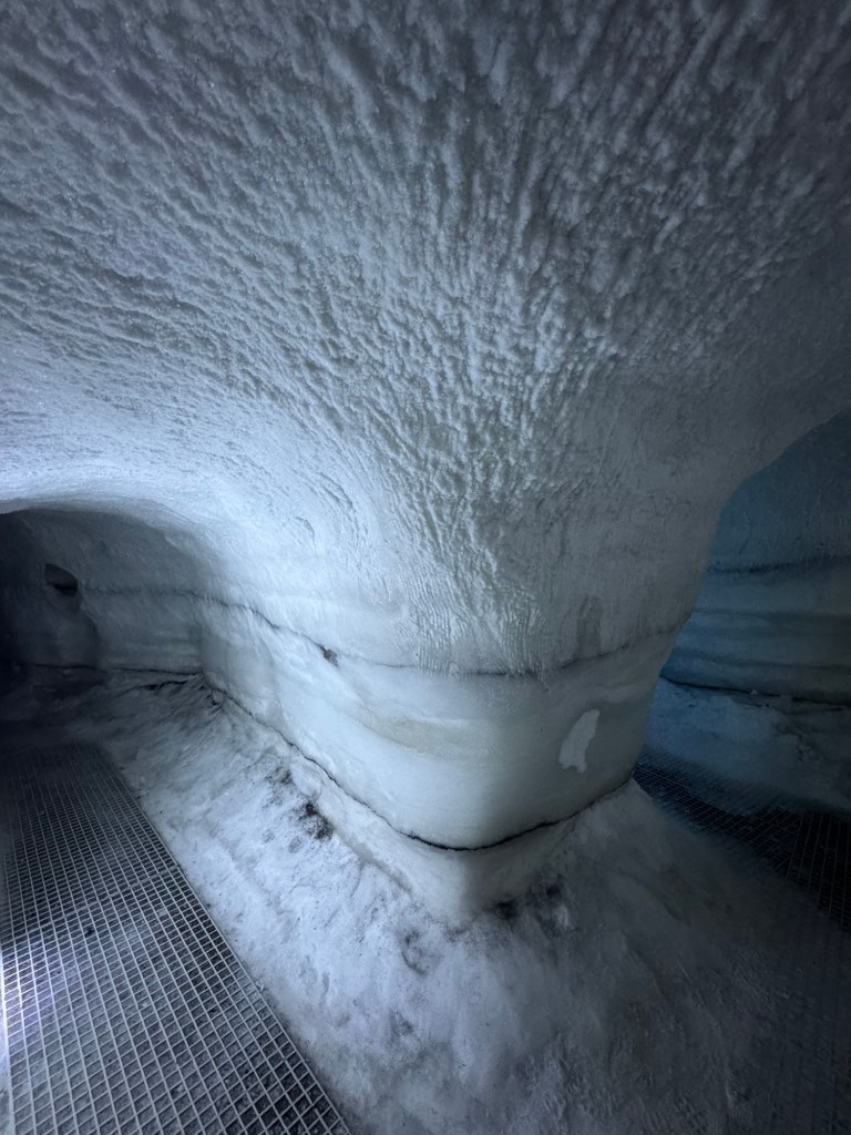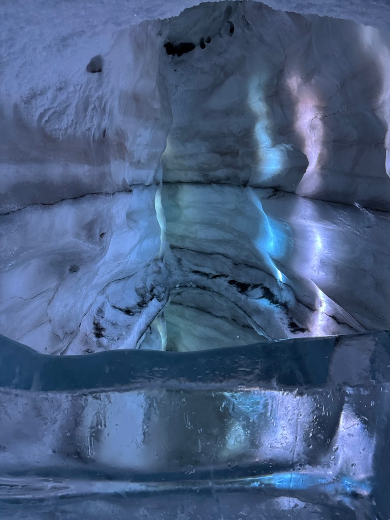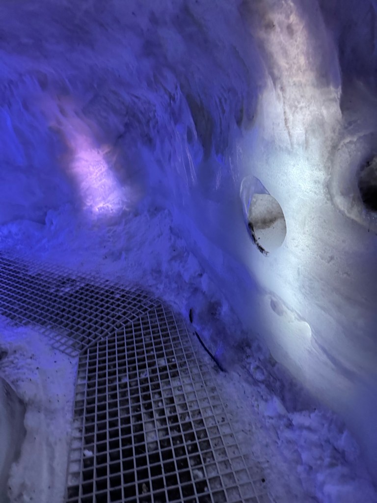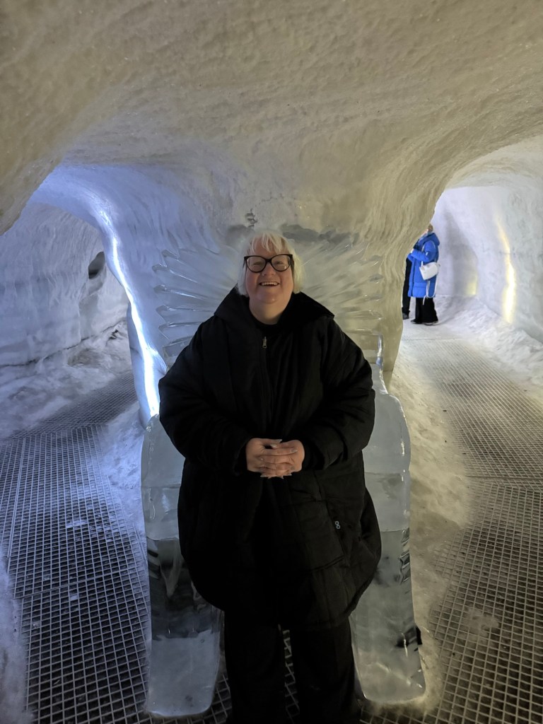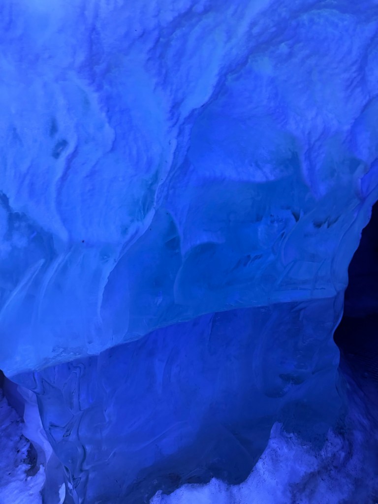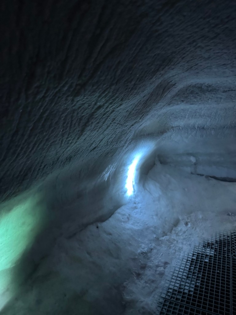During the winter, ice caves pop up all over Iceland. They can pop up on one day and be gone the next as they are quite unstable. As fascinating as I find the idea, this is just a little too thrilling for my liking. This was the next best thing. It gave us an impression of what it is like, but in a safe and controlled environment. It is 100 meters long and built with over 350 tons of snow from the Blue Mountains. I found this utterly fascinating. There was a main cave and then there were smaller caves off to the sides that you could explore. There was also a carved ice throne, and Graham took a photo of me while I channelled my inner Elsa.