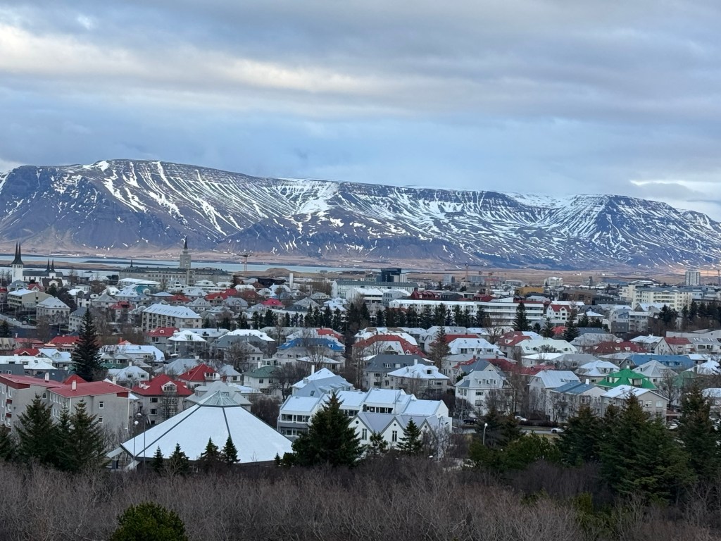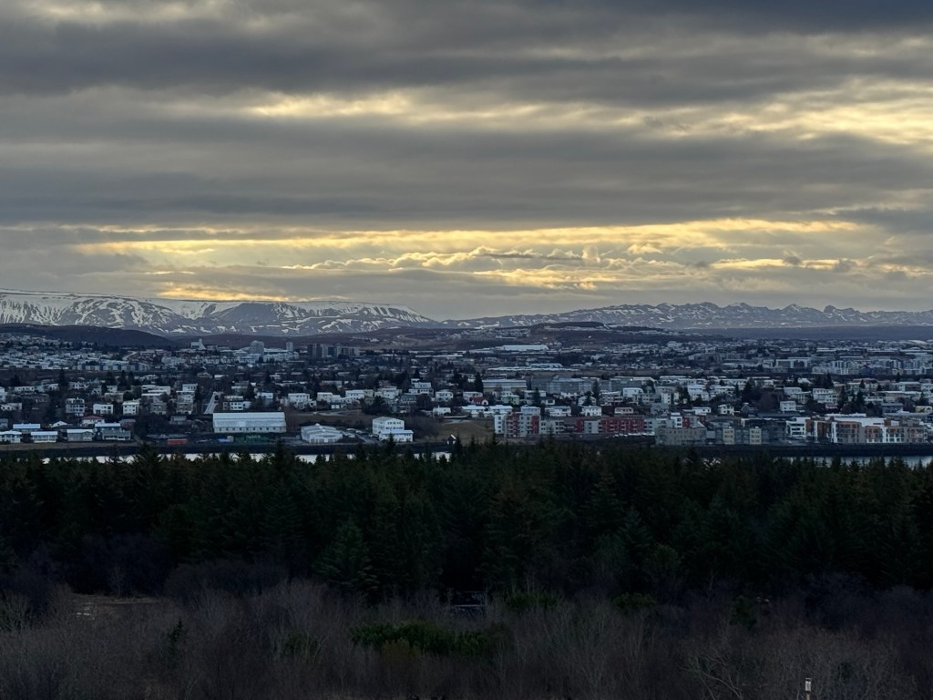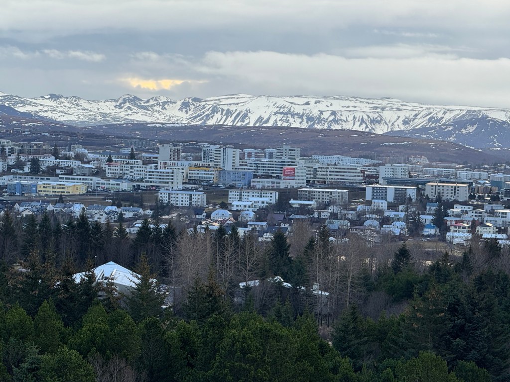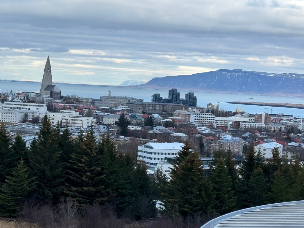 After this, we were ready to leave. We had just missed the bus and explored the immediate area. There are all kinds of hiking trails in the vicinity. It was cold and windy up there and I was very glad when the next bus arrived. This time the audio worked, and I learned quite a few interesting facts about Reykjavik.