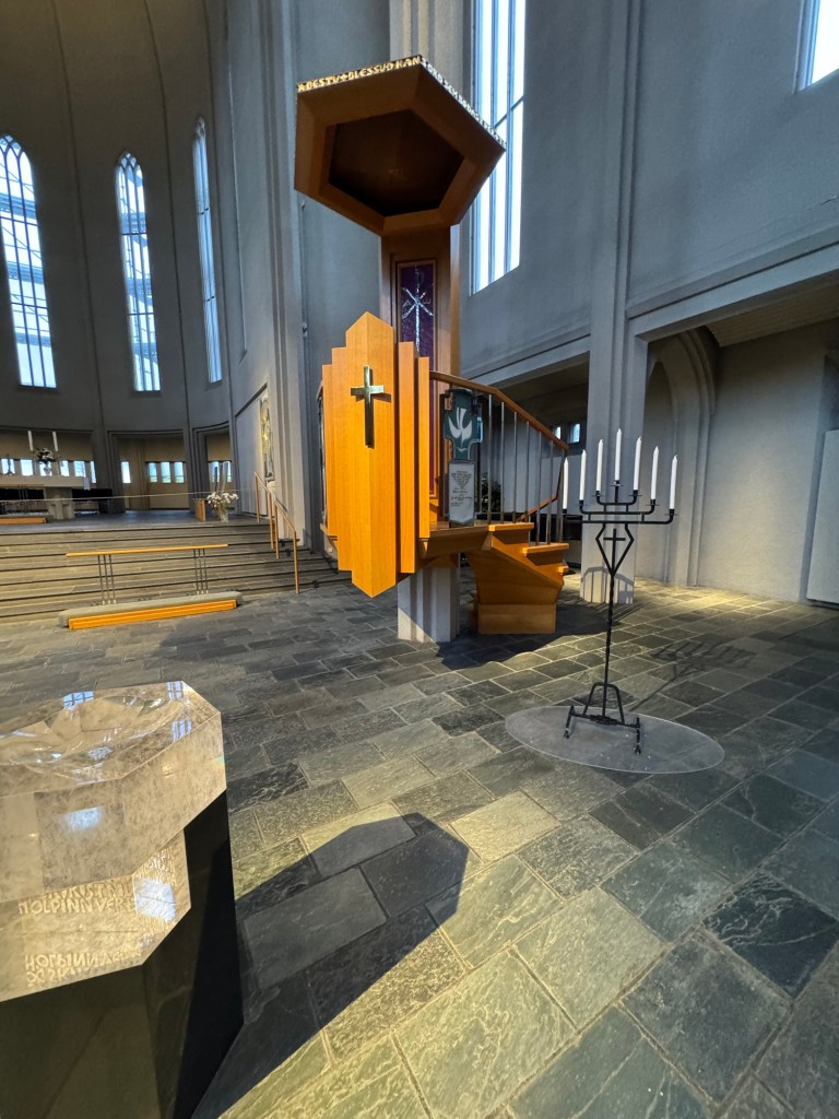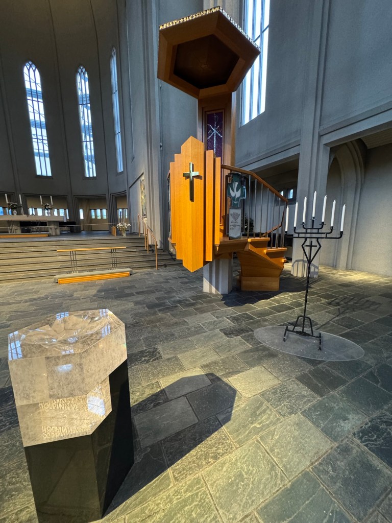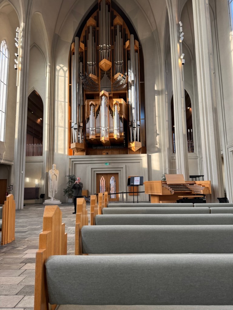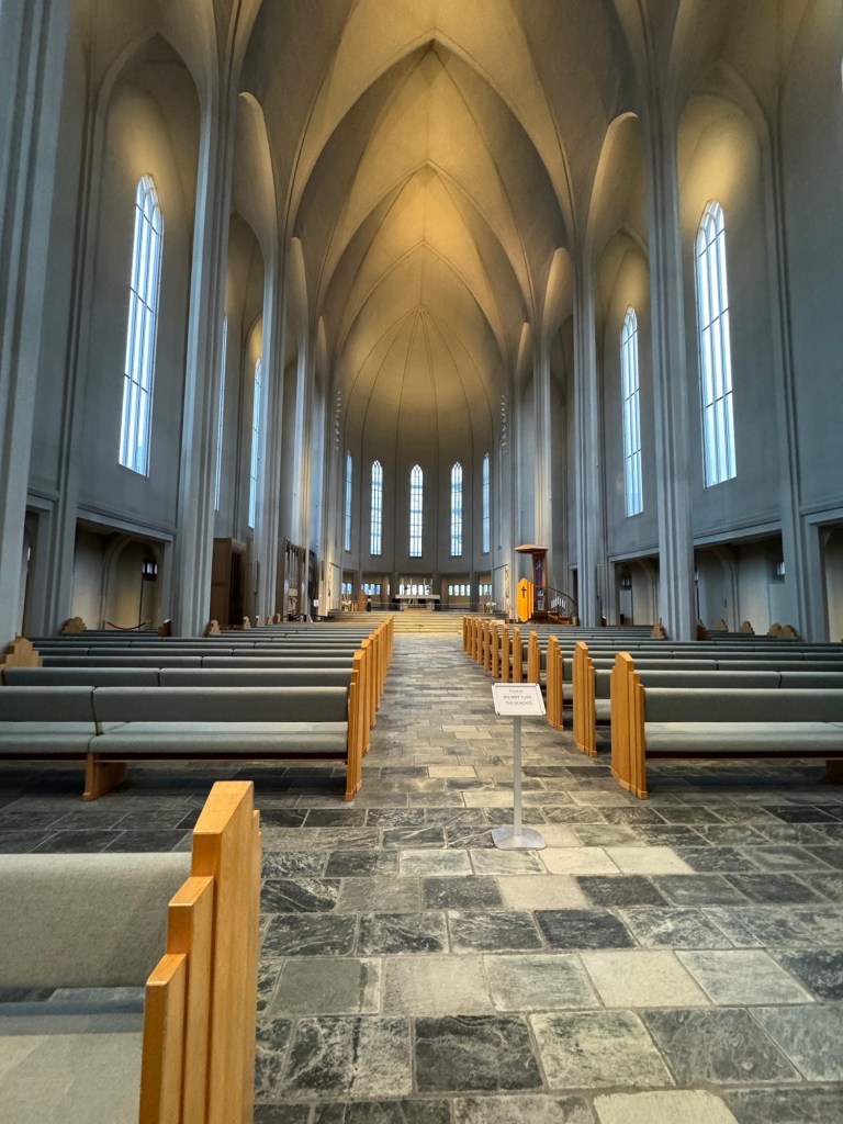 Graham was teasing me that us Lutherans do not know how to do churches and asked me where all the elaborate art and all the gold was. Over the years, Graham has seen plenty of Lutheran churches and knows that they are not all as plain as this one. The physical building of the church I grew up in and where we got married in predates the foundation of the Lutheran church and therefore is not quite as plain as churches that were designed for the Lutheran church. He has also seen some Lutheran churches that are positively dripping with intricate mosaics and one could be forgiven to think that these were Russian orthodox churches. However, Hallgrímskirkja was definitely at the very plain end of the spectrum and a great example that very plain can be very beautiful.