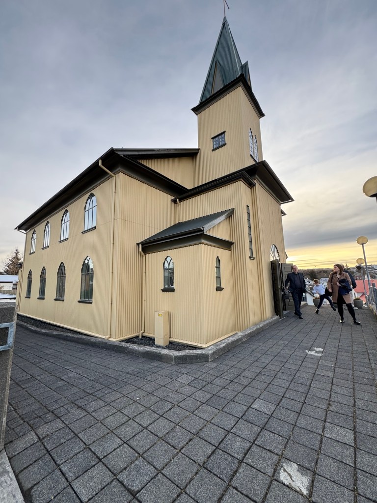 We had intended to check out the tourist information first, but the signpost to the tourist information seemed to be contradictory. In the end we gave up and figured we probably find our own way around without a map. Our first stop was the Lutheran Free Church, which is located on top of a fairly steep hill. The church was built in 1913. It was from this church that the first radio mass in Iceland was broadcasted in 1926. This was very progressive even by Lutheran standards. I was glad to see that the door was open. I had read that this is well worth seeing, but that it is often closed. However, there was a good reason why the church was open. As we were going up the stairs to the church, there were a lot of people coming the other way. I figured that service of some description had just finished. As we approached, I noticed that there was a coffin in front of the altar. Out of respect, I did not want to enter the church while the coffin was there. We decided to hang back for a short while t see if the coffin would be moved. This did not happen, and we decided to leave.