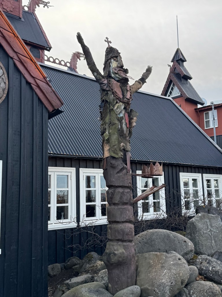 We came across another church. This was the main Lutheran church of Hafnarfjörður, which is attached to the local community centre. This was closed. We pushed on towards one of the other landmarks that I had read about before we came to Iceland. They have something in Hafnarfjörður called Viking Village. This was listed on various websites as a must do attraction, but there was next to know information about this. I figured that it was a museum of sorts. It did not take us long to find this. The buildings looked interesting and there were all kinds of statues in the area. What we could not find is an entrance. Eventually we worked out that the Viking Village consists of a hotel, holiday cottages, a Viking themed restaurant and a cave bar. There is a museum of sorts there, but this is part of the restaurant, and you can only access it if you have dinner there.