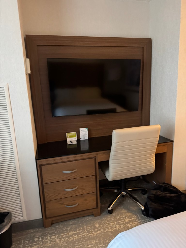I had hoped that we would go for a swim and then grab some dinner. I took some photos of the room while Graham used the bathroom. He laid down when he was done and I asked him if he was throwing in the towel. He told me no. I went to the bathroom myself and when I came back, he was fast asleep. I know when to give up. I was awake again at this stage and spent some time reading. However, once the light started to fade, I was ready to go to sleep, too. At some stage, Graham got up to have a shower, but he could not figure out how to get warm water and came back to bed. I got up once more to take my medication and then I settled down for the night.