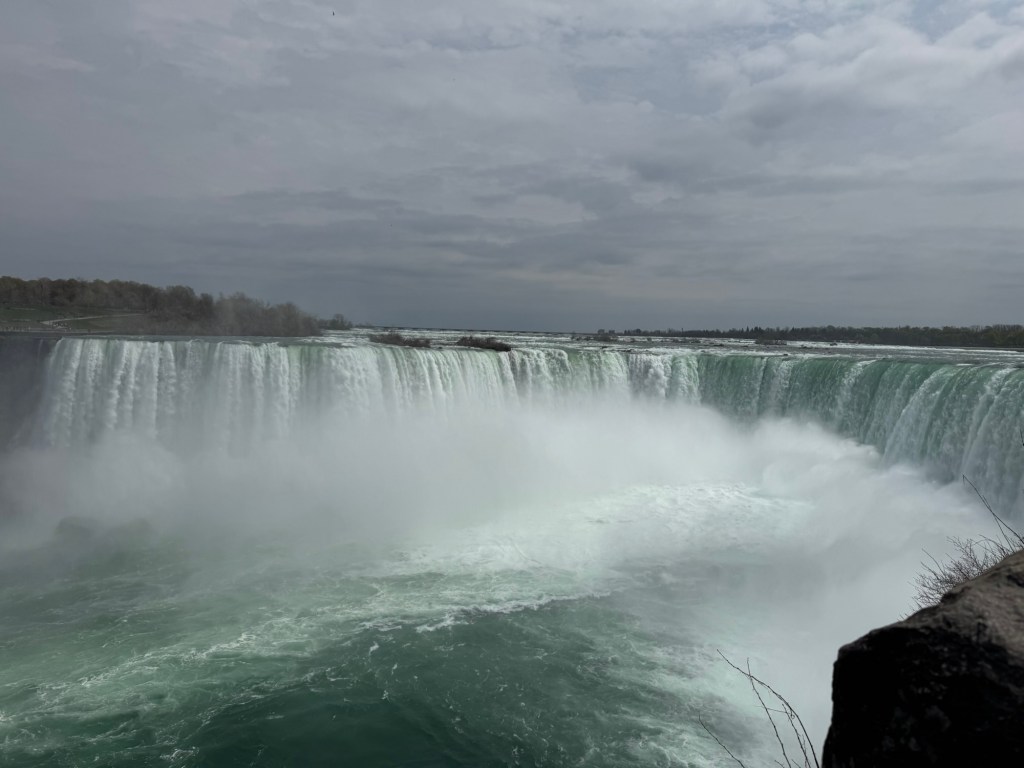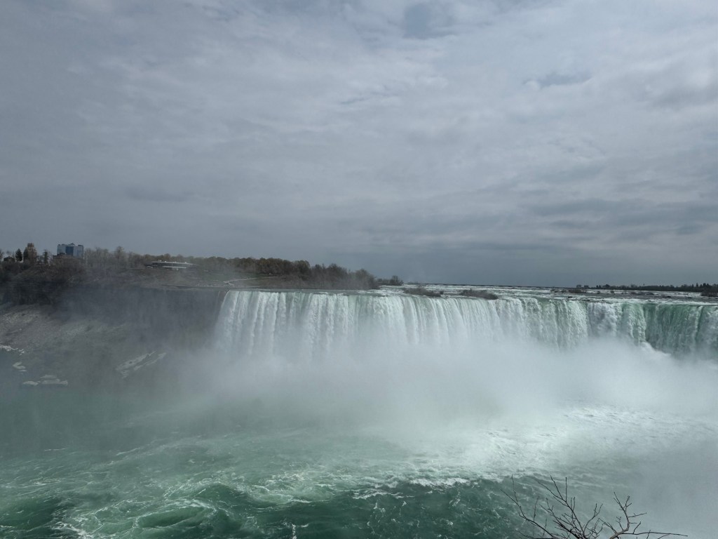 When people mention Niagara Falls, I think most people who have not seen this themselves think it is just one big waterfall. That was certainly the impression that I was under. I knew that there is a US and Canadian side of the Niagara Falls, but I kind of assumed they were just different perspectives of the same falls. This is not the case. There are actually three. There is a medium sized fall and the very small Bridal Falls that are on the US side. Then there are the Horseshoe Falls, which are on the Canadian side and are by far the largest of the three. Although we spent most of our time admiring the Horseshoe Falls, we did follow the promenade until we were opposite the two waterfalls on the US side and got a clear look of them. There was a little park opposite the US falls, and we sat down there for a while enjoying the resident birds, the glorious weather, and our surroundings. As an added bonus, at that point the promenade has a little outcrop, which meant that I had a clear view across the whole of the Horseshoe Falls. From the rest of the promenade, you could only see parts of this.