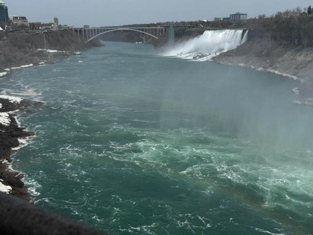 On the short drive, our guide Nicki pointed out the bridges that lead across the border into the USA. I got the distinct feeling that this traffic is fairly one-sided at the moment with people from the USA coming into Canada rather than the other way round. Soon we arrived at Niagara Falls. Graham had warned me that the town that is near the falls is essentially Las Vegas with a lot of water. He was not wrong. I was not exactly taken with this. That soon changed when I got my first look at the falls. We initially saw the falls on the USA side, and this was spectacular enough. However, the Canadian falls are truly breathtaking.