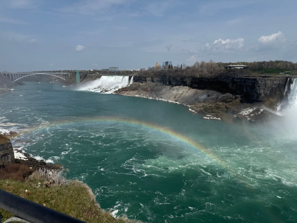 We still had a couple of hours left to explore. We took our time walking along the promenade stopping often to enjoy the ever-changing views of the falls. We saw a lot of different birds in the process. I also got my wish. I had wondered ahead of the trip if I would get to see a rainbow at Niagara Falls. Graham had teased me that I was being greedy. I did get my wish when we had covered about one third of the distance we were going to walk. I was quite surprised about to location of the rainbow though. I had imagined it to be above the falls, but it was actually near the bottom. It did make sense as most of the mist was there. I was happy that I got to see a rainbow at Niagara Falls. In the end it was not just one rainbow, but we saw a number of them.