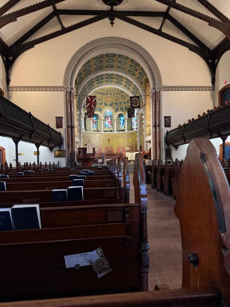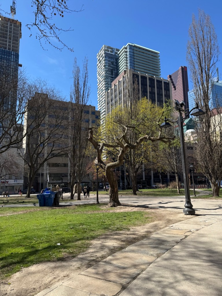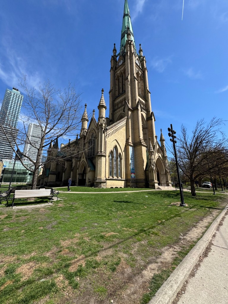 We took a little detour to check out St. James’ Park. This is meant to be one of the places in Toronto to see the cherry blossoms. We were pondering going to a different park that has the highest concentration of cherry trees in Toronto. However, this is a bit further outside the city. We figured if there were cherry blossoms at St. James’s Park, it would be worth our while. However, there was no signs of cherry blossoms. Instead, we pushed on to St. James’ Cathedral. Again, this was built around the same time as the other two churches and also was designed in the Gothic Revival style. However, the interior is a lot more ornate with ribbed vaults, flying buttresses, and pointed arches. Again, we spent a while just sitting down and enjoying our surroundings.