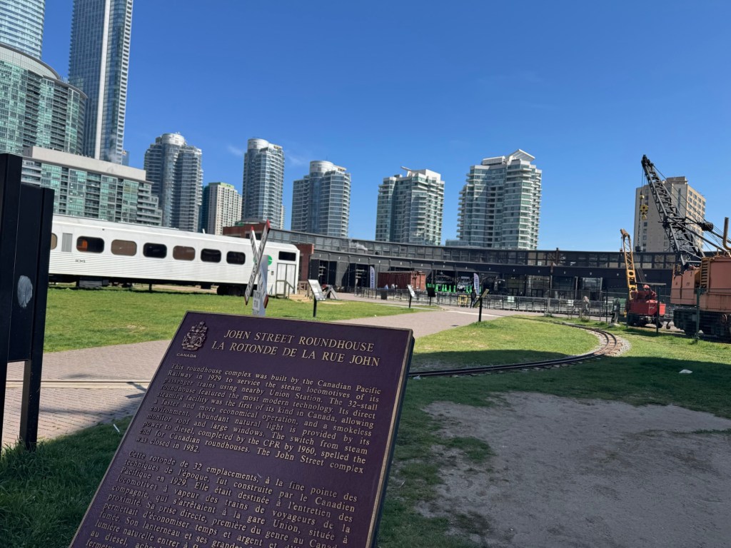 We cut through Roundhouse Park. Roundhouse Park is a 17-acre park in the former Railway Lands. It features the John Street Roundhouse, a preserved locomotive roundhouse that houses the Toronto Railway Museum, Steam Whistle Brewing, and the Rec Room restaurant and entertainment complex. The park is also home to a collection of trains, the former Canadian Pacific Railway Don Station, and the Roundhouse Park Miniature Railway, which operates during the summer months. I think this as deserved a bit of a closer look on a future visit.