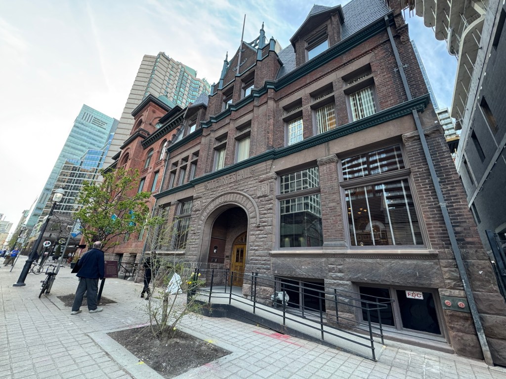 Rather than taking the most direct route back to the hotel, Graham decided to take a slight detour as we had not been down that particular road before. There was nothing of interest on that particular road, but it led to another road that we had not been on that not only took us straight back to the hotel, but was also very pretty. Right next to the hotel was a fascinating building. This was St. George’s Hall. St. George’s Hall was constructed in 1891 for the St. George’s Society, a charitable organisation supporting English immigrants. The building features an eclectic blend of architectural styles, combining elements of Romanesque, Flemish, and medieval architecture. This makes it very interesting. Since 1920, it has been home to the Arts and Letters Club. The Arts and Letters Club of Toronto is a private members’ club, which brings together writers, architects, musicians, painters, graphic artists, actors and others working in or with a love of the arts and letters. It was founded in 1908 as a gentlemen’s club, but women have been members since 1985. From photos that I have seen, it is even more fascinating on the inside than it is on the outside. It is open for non-members on Friday afternoons and if we should ever find ourselves in Toronto on a Friday, I would love to check this out.