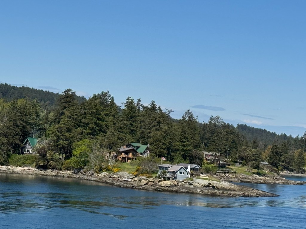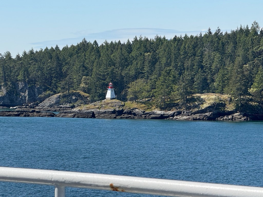 When we arrived at the Swartz Bay ferry terminal, Justin gave us a return time. We did not have very long and there seemed to be very little there. We decided to stay on the coach. A few other people had the same idea. When the rest of the group returned, we got in line to get onto the ferry. This was running a little late. Apparently, this is not unusual for the evening ferries as ferries pick up delays throughout the day. Justin explained that part of the reason for this is their cargo operation. The ferries are equipped to take quite substantial trucks, but moving freight that way is very expensive. The cheaper option is to just drop the trailer at the ferry port and BC Ferries then uses tractors to move the trailer on and off the ferry. The owner of the freight then picks up the trailer at the other end. This seems to be a very roundabout way of doing things.