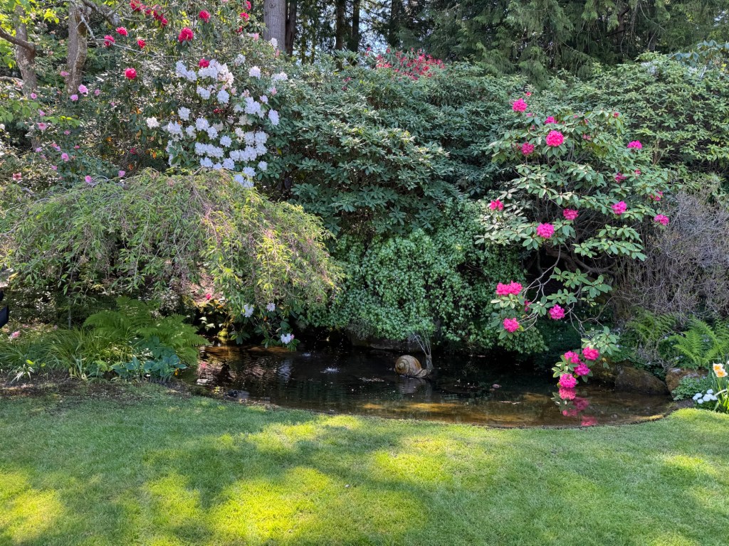 We headed out in the garden. Graham had wondered if we would see any Sitka deer there as we found out on our last visit that they are in that general area. However, we were out of luck. The gardens are very pretty though. They even have their own bee hives and the honey that is produced there is served in the hotel.