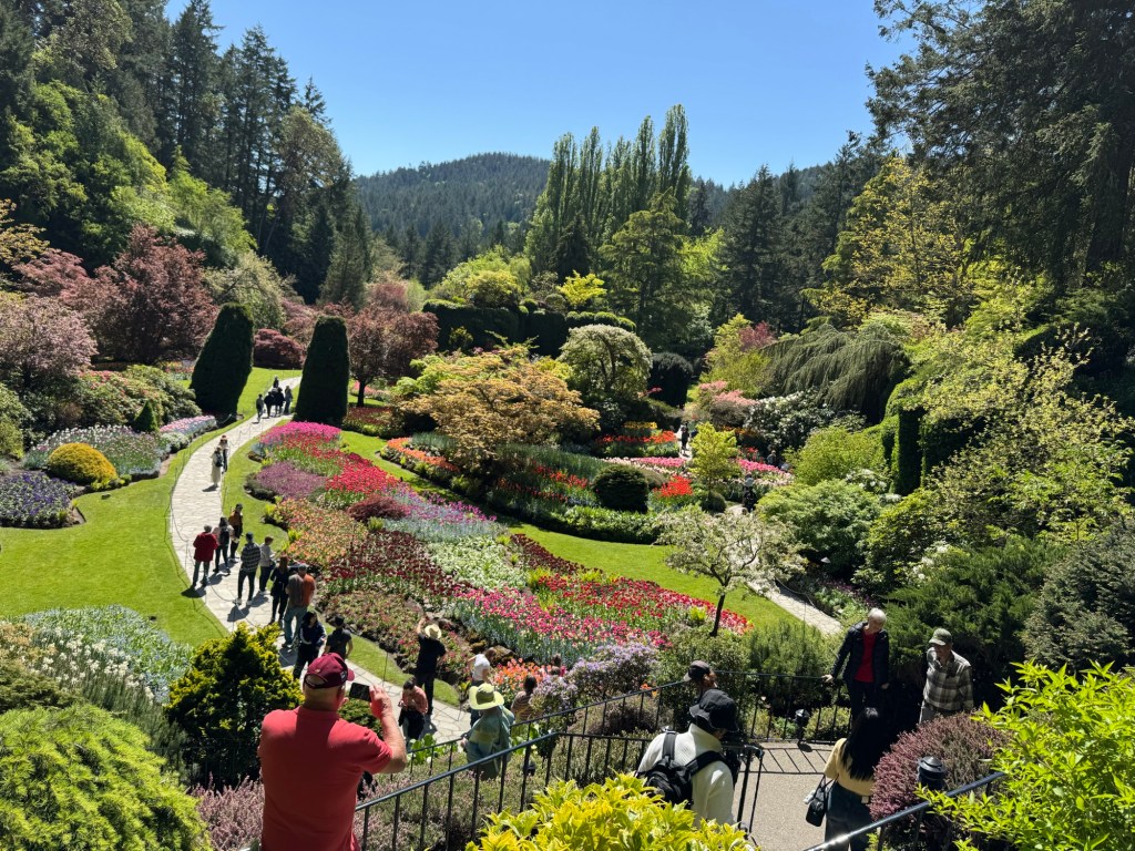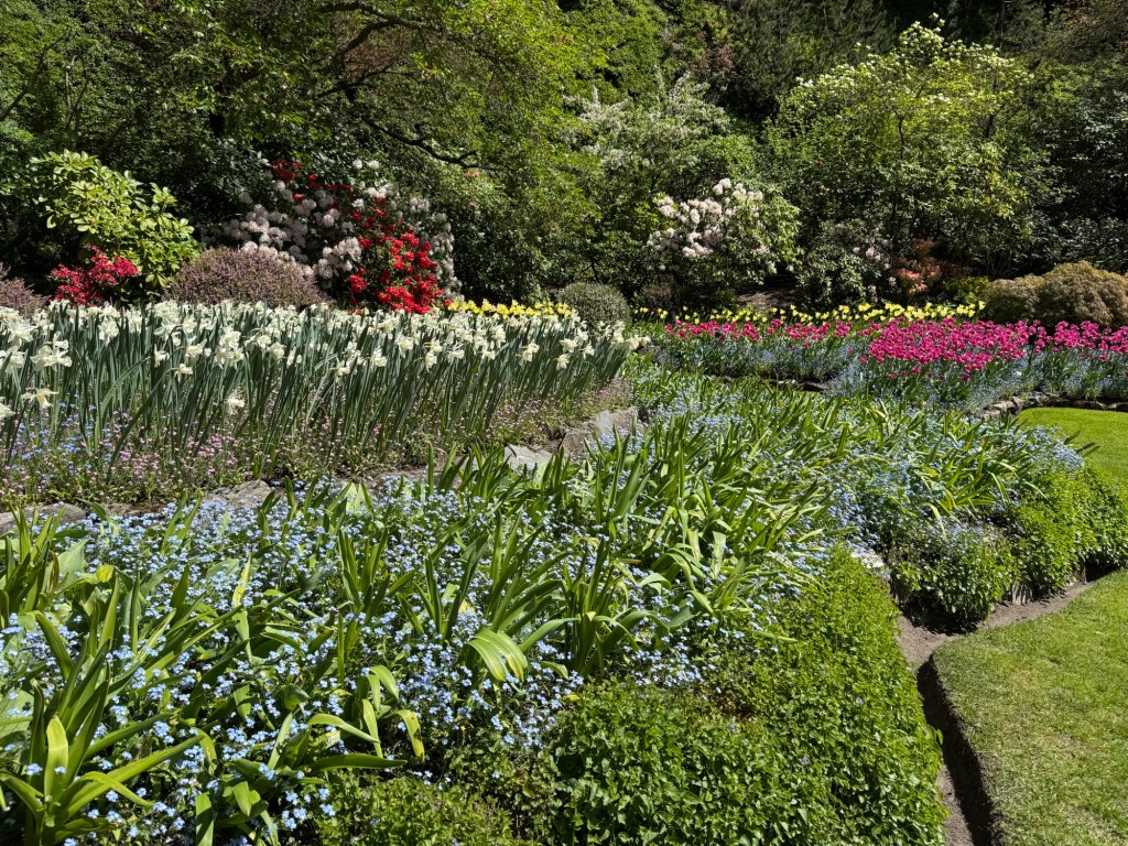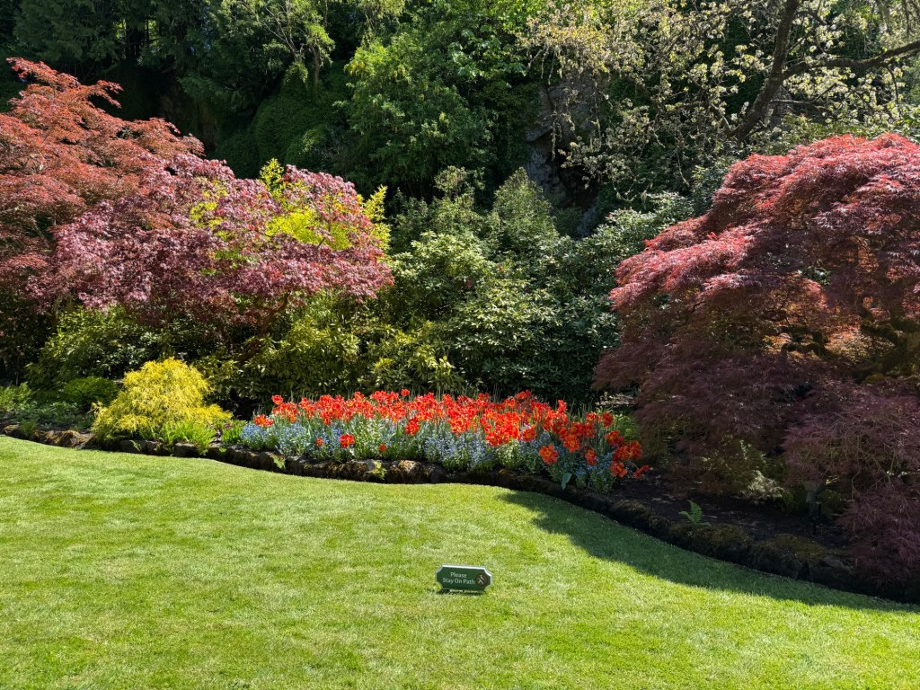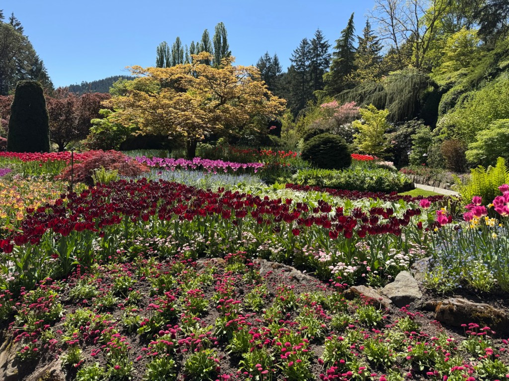 When we were there in 2022, we had seen a hummingbird near the entrance. We stayed in that area for a little while, but we were not so lucky this time round. Then we headed to the Sunken Garden, which is the centre piece of Butchart Gardens. Even though we were nearly a month earlier than we had been in 2022, almost everything was in full bloom. We took our time enjoying this area.