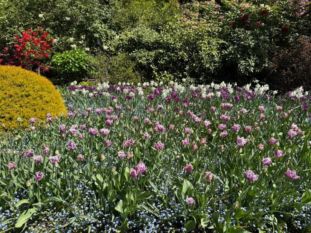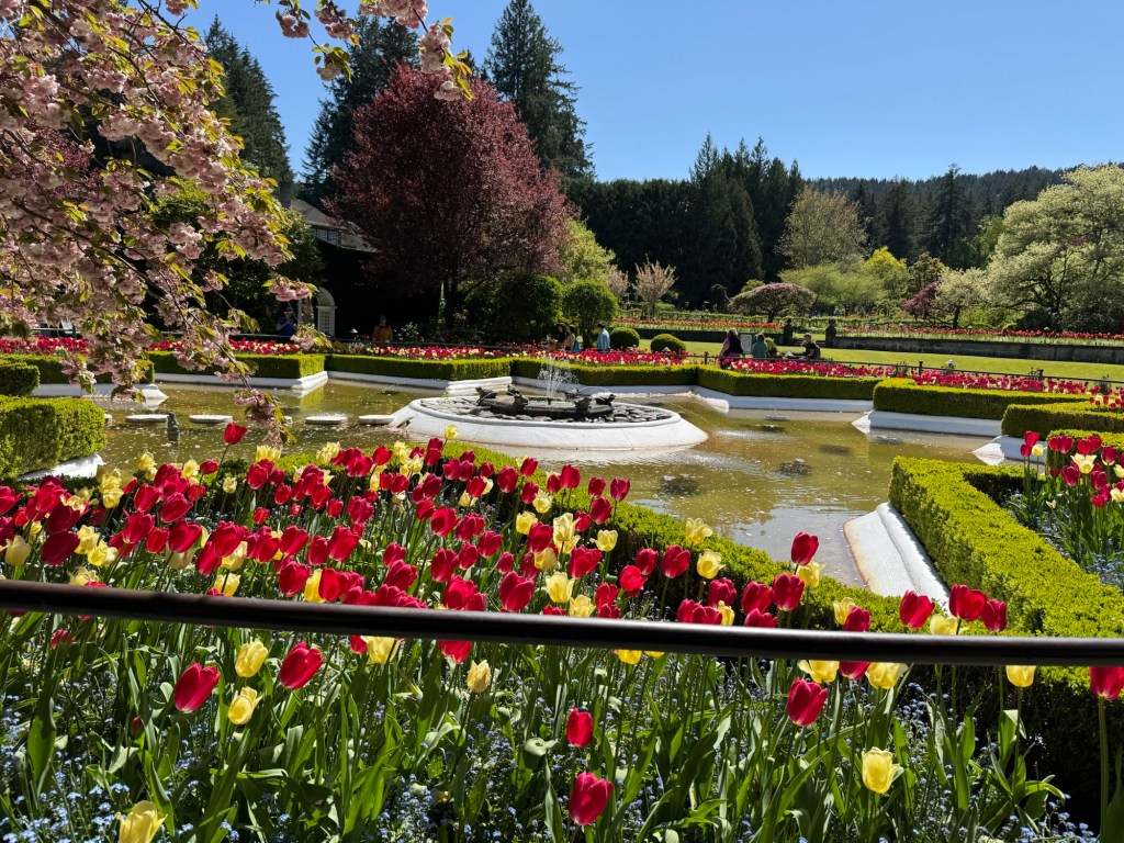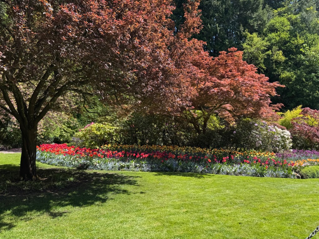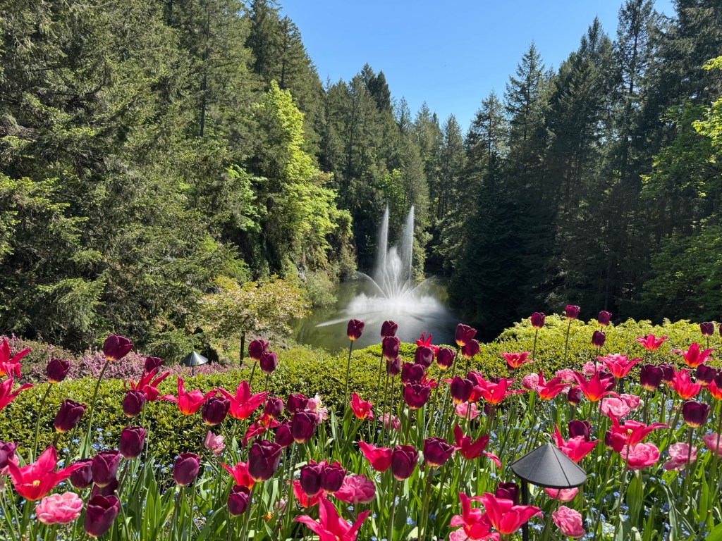 When we were there in 2022, we had seen a hummingbird near the entrance. We stayed in that area for a little while, but we were not so lucky this time round. Then we headed to the Sunken Garden, which is the centre piece of Butchart Gardens. Even though we were nearly a month earlier than we had been in 2022, almost everything was in full bloom. We took our time enjoying this area.