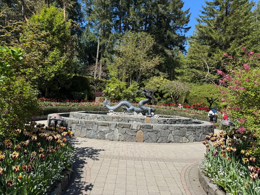 There was one more thing in that general area that I wanted to see. This was the dragon fountain. The dragon fountain was gifted to Butchart Gardens in 2015 by the city of Suzhou to celebrate the 35th anniversary of Victoria and Suzhou being twin cities. Sometimes I wonder if Suzhou is haunting me. Ever since we visited Suzhou in 2018, we have been to so many places that feature gifts from Suzhou or that have gardens that were designed in conjunction with the city of Suzhou.