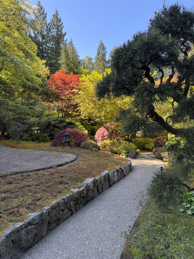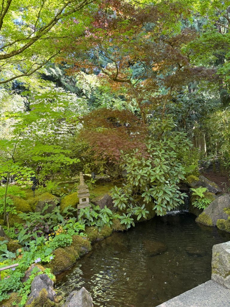 Then we cut through the rose garden to the Japanese garden. The rose garden is something that I would love to see in bloom, but both of our visits have been too early in the year for that.