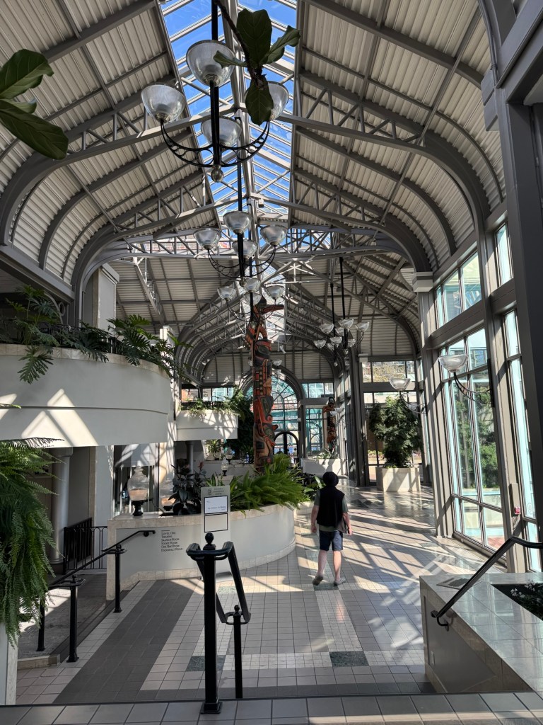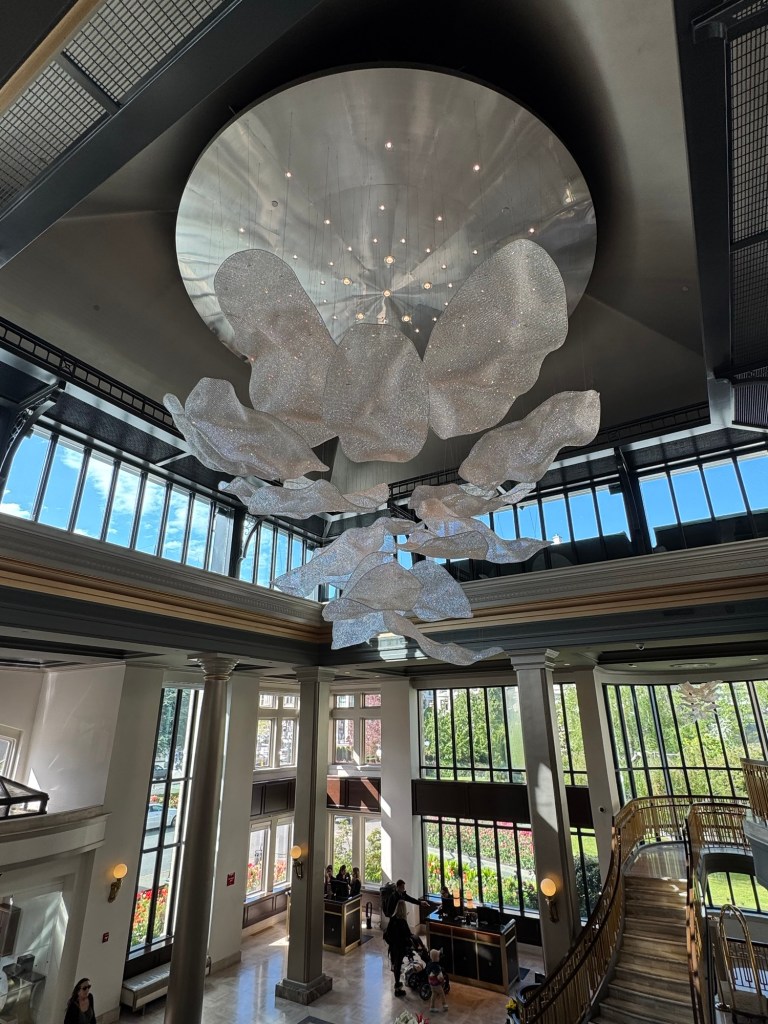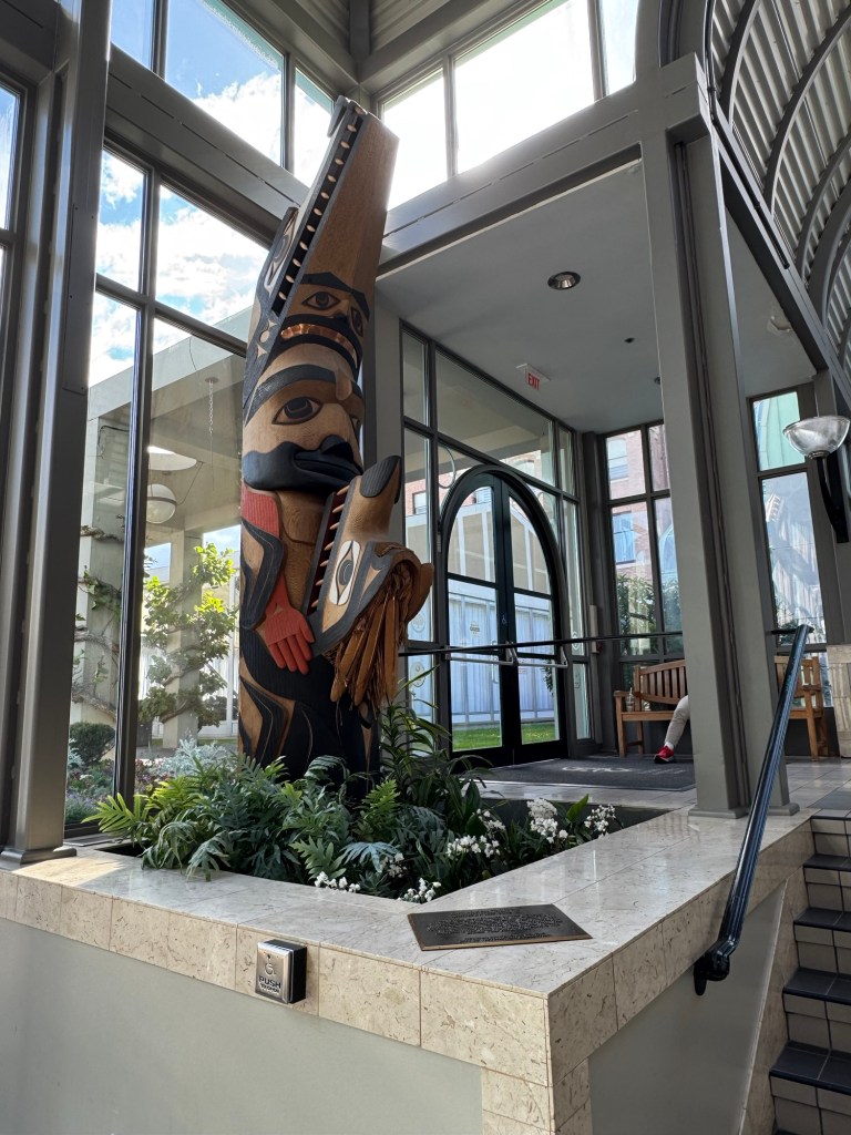 Where we entered the hotel, there were a number of shops and a lobby area where they served afternoon tea. There was also a bar in this area. We then headed towards the convention centre which has the look of a Victorian market hall. There are also a number of totem poles in this building. We then headed back to the main building and checked out the guest lobby. They have an amazing chandelier in there. However, I felt like this space needed a Chihuly chandelier.