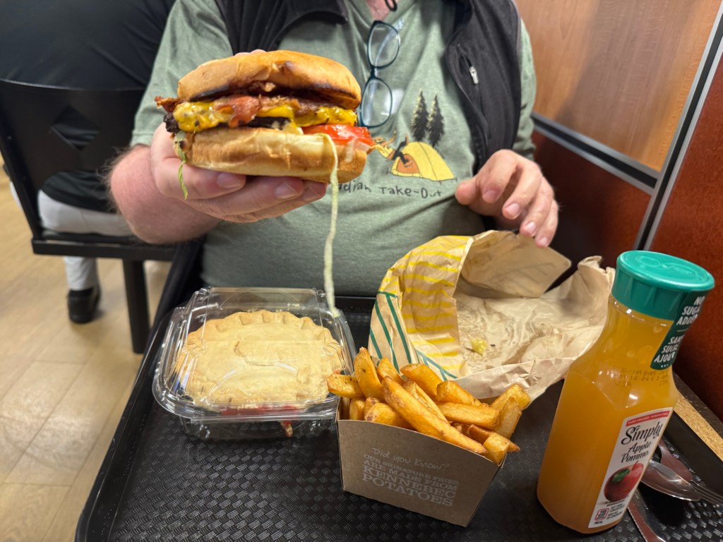 It was time to get some dinner. Both breakfast and the ice cream we had were a distant memory at that stage. There was both a cafeteria and coffee shop on the ferry. Graham had done some research, and it stated if you wanted to have a meal, to go to the cafeteria as soon as you get on the ferry as it gets very busy. That was sound advice and was precisely what we did. Already the line was huge and moved very slowly. Still about 20 minutes later, we got to the front of the line. Graham had a bacon Cheddar burger with fries and some apple juice. I had a beef dip sandwich with fries and a raspberry lemonade. The food was very nice and there was a lot of it. Graham had asked me before we ordered our hot food if I wanted to share a rhubarb and strawberry pie with him. This should have acted as a warning as this was huge. Graham just about managed to finish his main course. I did not manage to finish mine. We took the pie with us to have for breakfast the next day.