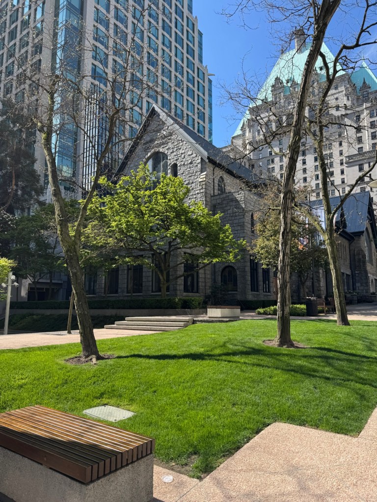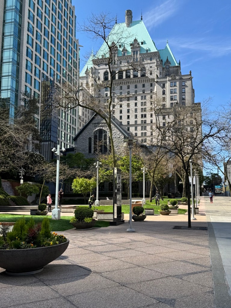 After the flight, we headed back towards the hotel. Things went steadily downhill from there. We took a little detour so that we could have a closer look at our ship and then we headed back to the hotel. I took some photos on the way. The Anglican cathedral of Vancouver was right opposite our hotel. We decided to check this out on the way back. We headed to the main entrance and there was a sign that access was via another entrance, but it was not clear where this entrance was. We gave up and headed back to the hotel. Fortunately, we will be back in Vancouver next spring, and this will be a more relaxed proposition. The cathedral is high on my list then.