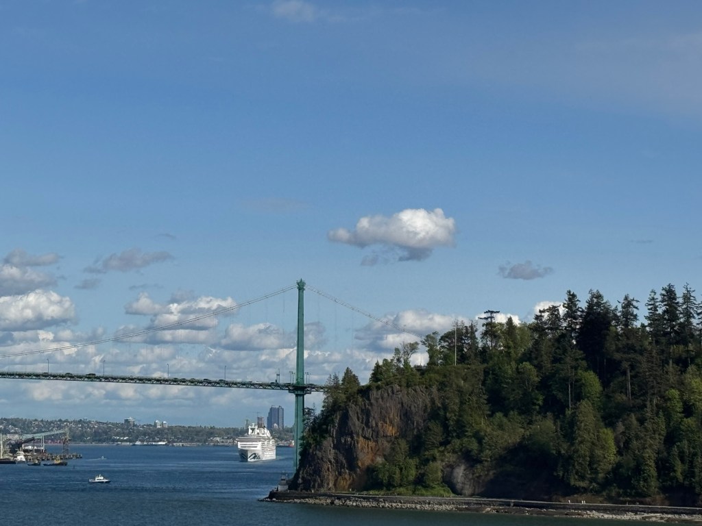 By that time, I was ready to go exploring. Graham did not share my enthusiasm and stayed in the cabin. I had timed this perfectly as I was out and about just as we were passing underneath the Lionsgate Bridge. I took some photos and then I carried on exploring. The layout of the ship is not all that intuitive. Our cabin was on deck 10. The restaurant we were due to eat at that night also was on deck 10. Yet I could not figure out how to get there. I just seemed to come up to locked doors. Eventually I dropped down to the deck below. I had a quick look at the thermal suite, which was truly amazing. I was tempted to get a length of cruise pass but wanted to check with Graham first if he fancied this as well. I mentioned that and was given the hard sell. This is one thing I will not put up with. I instantly lost interest.