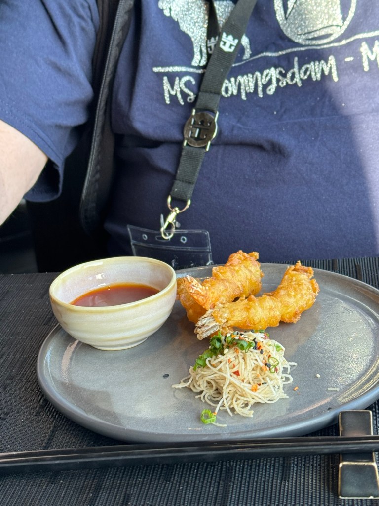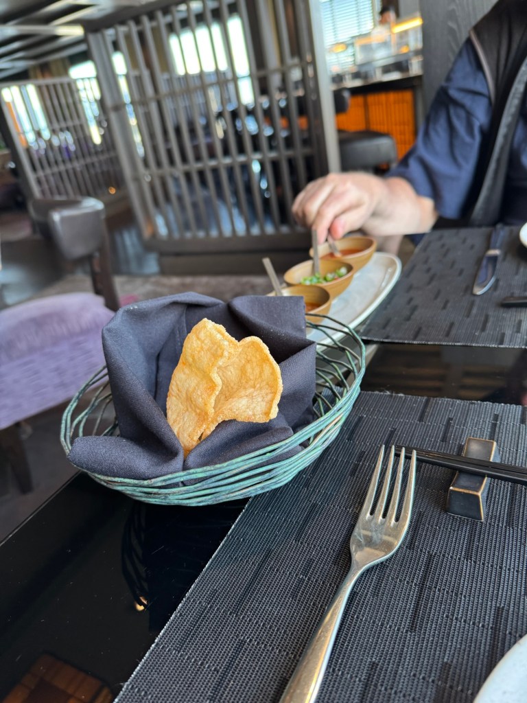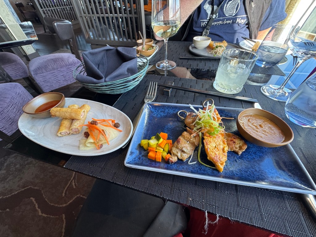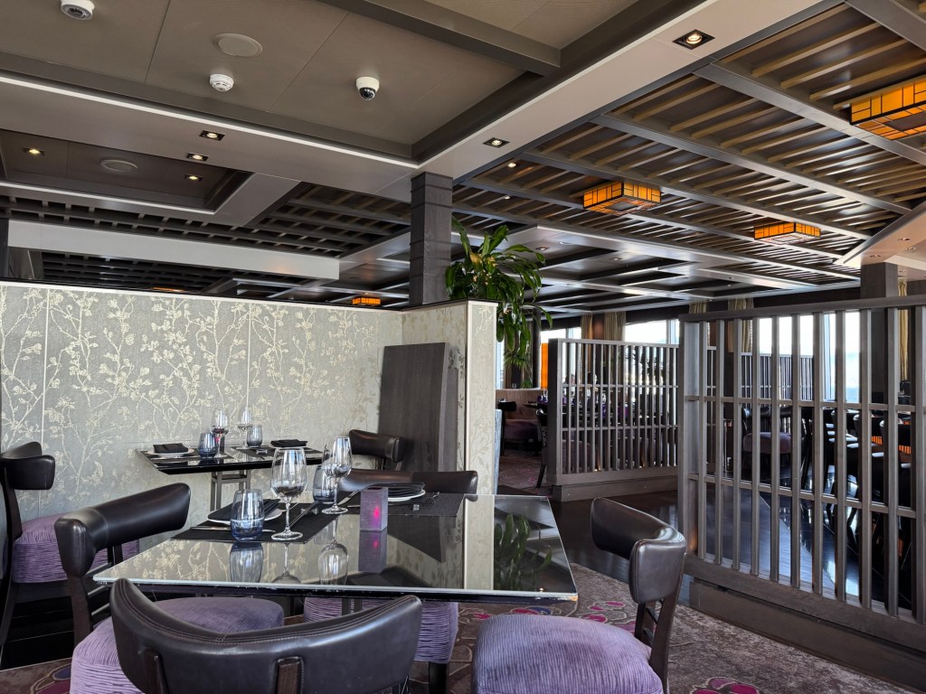 Instead, I headed through the buffet towards the back to the ship. When I got to the aft elevator lobby, there was signage there for Tamarind, which was the restaurant where we had a dinner reservation that night. Tamarind is their pan Asian concept. We had one free meal in one of three specialty restaurants included in the price of our cruise and had decided to use it that evening. Our reservation was not until 19:30. I checked at the podium, and they advised to just come whenever as they were not fully booked this evening. I also checked if there was a way through on deck 10 and was advised that there was not. I retraced my steps and headed back to the cabin. I told Graham that I had spoken to the restaurant, and they told me that we could come whenever we were ready. Graham decided that he was ready there and then. We made our way to Tamarind.