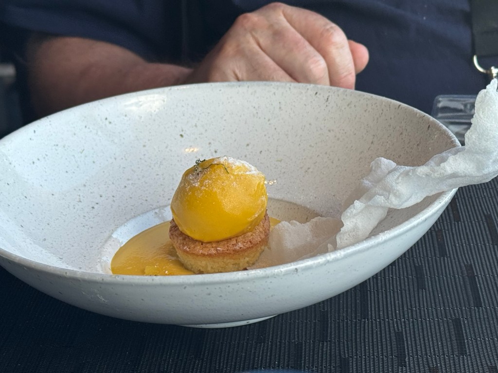 They have a Chateau Ste. Michelle Chardonnay on this ship and Graham decided to try this. Although he did not dislike it, he prefers the Riesling. I had one of their cocktails that is exclusive to the Alaska season. The Sitka Spritz consists of Cynar, fresh lemon juice, passion fruit, topped with sparkling wine. Cynar is an Italian bitter aperitif that is made from 13 different herbs and plants. The main ingredient is artichoke of all things. Taste wise, it falls between Aperol, which I love, and Campari, which I detest. I was not at all sure on the first sip, but once all the flavours had a chance to mingle for a while, I really enjoyed it.