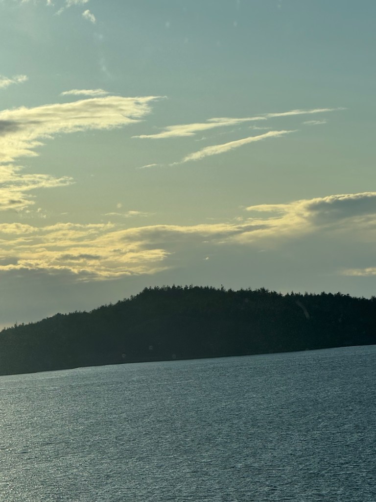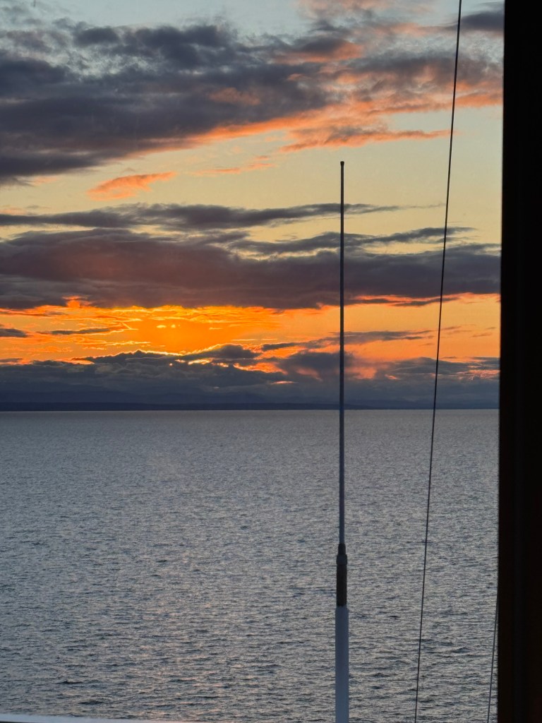 Some of the Royal Caribbean ships have a similar venue, but higher up and more towards midship, but I would not have thought this would make too much of a difference. However, for some reason I found this space to be really disorientating. I wondered if I was just overtired. We did get a bit of a sunset, but Graham reckoned that it would just fizzle out. He decided to give it a bit longer, but I decided to head back to the cabin. I left my phone with him just in case. By the time I had waited for the lift, returned to the cabin, and had got ready for bed, Graham had returned as well. The sunset did get a bit of a second wind and Graham had taken a photo for me. He got ready for bed as well and soon we were asleep.