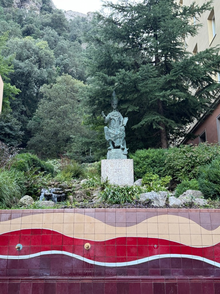 On my way to the basilica, I noticed an important piece of information. On a noticeboard opposite the rack railways was some information about the funiculars. There was a timetable for the funicular going up the mountain. There was also a notice that the funicular going down to Santa Cova was closed for emergency repairs until further notice. Our original plan had been to go down to Santa Cova that day, but between Graham’s nap and our late lunch, it was too late to attempt this. This worked out. Last year Graham headed down in that general direction and he commented that the first part of the trail is quite steep and very close to the cliff edge. As I struggle with going down steep hills and I am terrible with heights, I knew that if we could not use the funicular to get down the steep part, Santa Cova was off the menu.