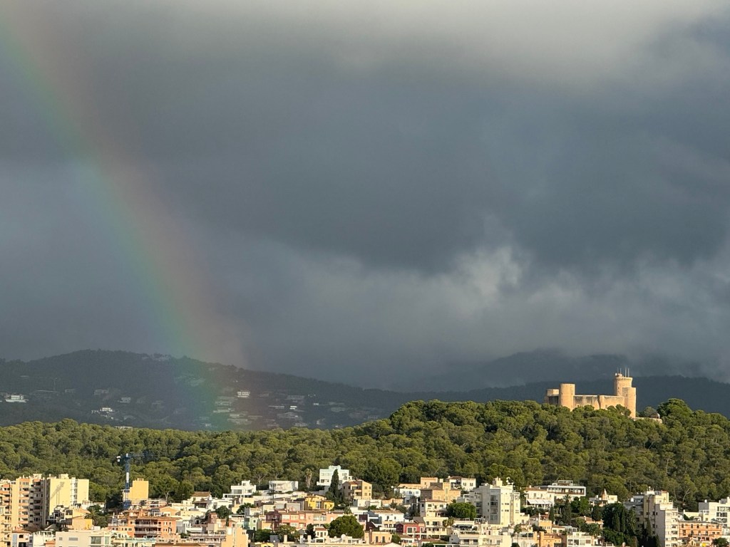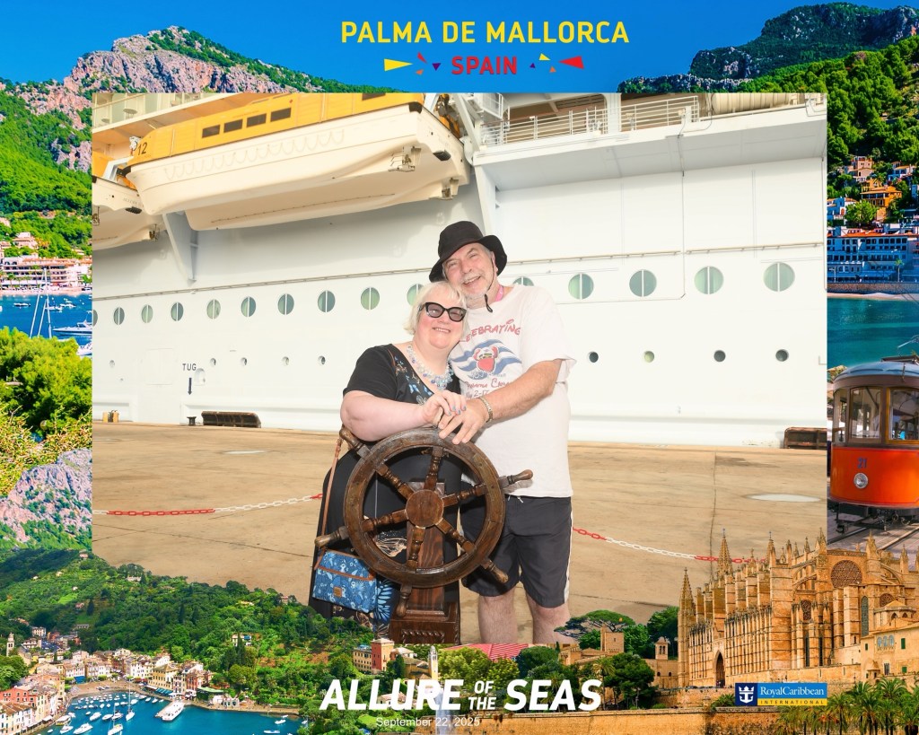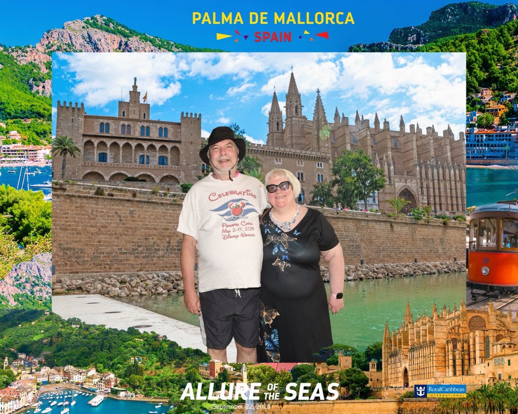 After breakfast, we took a turn around the top deck. There was a beautiful rainbow over Bellver Castle. I took a quick photo. I found a round lounger and sat down. However, this was damp and did not stay there for very long. We headed back to the cabin briefly. I picked up my iPad and my soda cup. Then we headed to the Schooner Bar. On the way, Graham got a coffee, and I filled up my soda cup with cherry Vanilla Coke. Normally my go to with the Coca Cola Freestyle machines on the ships is raspberry Coke, but they did not have this option on Allure.