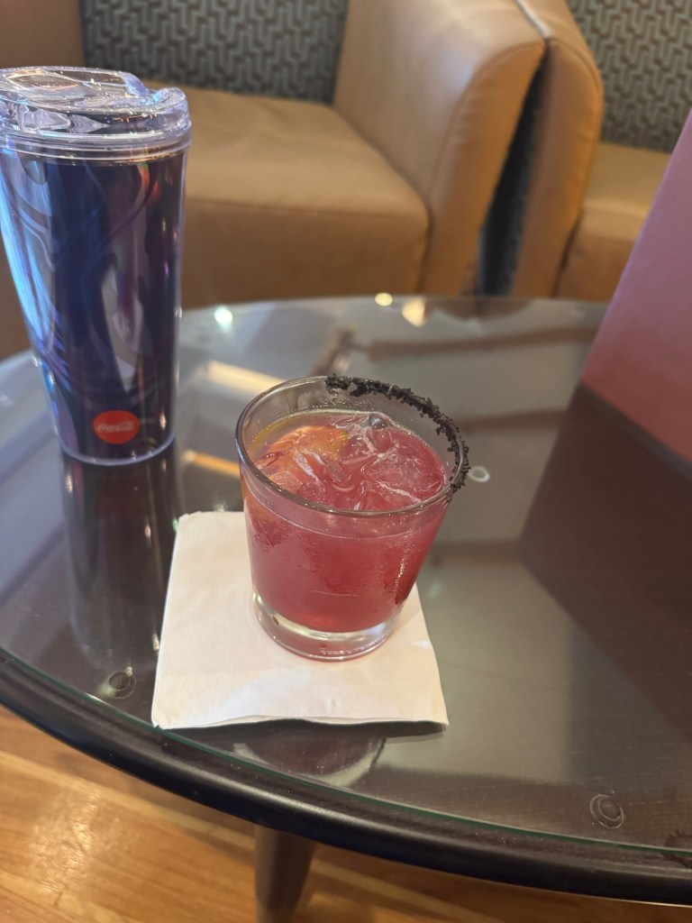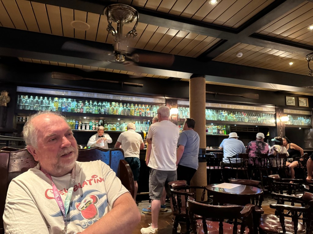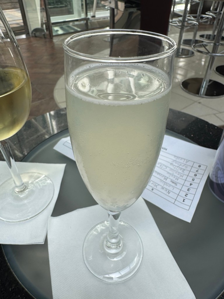 We headed back to the cabin to have a quick shower and to get changed. I picked up my soda cup again. I stopped by the Coca Cola Freestyle machine and got some lemon and lime sparkling water. Then we headed to the Schooner Bar for the next round of trivia. I figured it was 5 o’clock somewhere and ordered a cocktail. Back in 2023, the menu for the Schooner Bar changed. Before that, they had various creative variations on the John Collins cocktail as we well as a selection of rum-based cocktails. With the makeover of the menu, they introduced more variety. There were two drinks on the new menu that I really liked. The first was a Desert Pear Margarita, which consists of Patron silver tequila, desert pear syrup, and lime juice. I do like a good margarita, and this soon became a firm favourite. It was excellent on the first two ships we sailed on after the new menu was introduced, but it was not very nice on Odyssey of the Seas when I spent my birthday there last year. I had high hopes that this may be the stuff of my dreams on Allure, but I was sadly disappointed. It seemed to be very watered down and missing flavour. It was a once and done on this cruise. Graham had played it safe and had a Sauvignon Blanc.