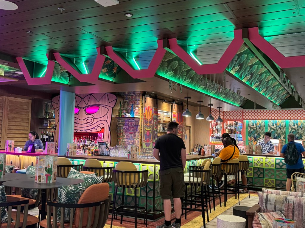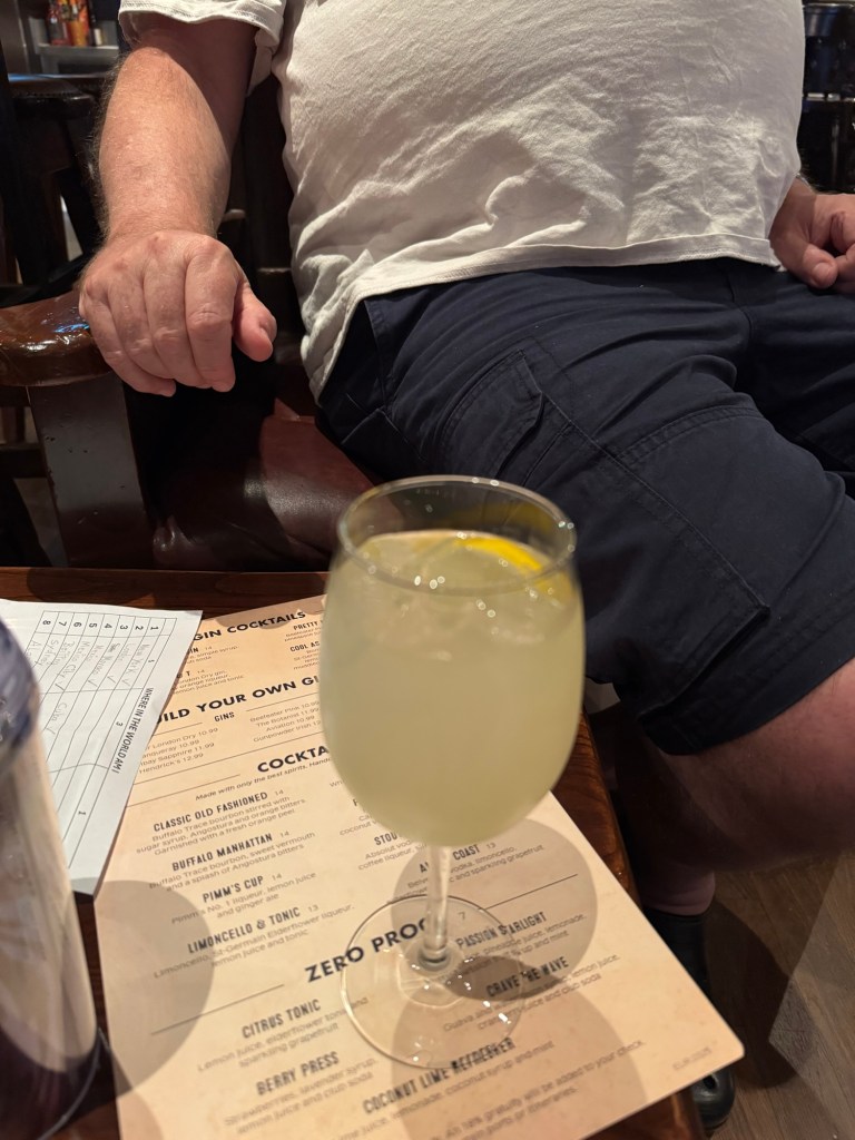 Once we were back on the Royal Promenade, I quickly took some photos of the Pesky Parrot Tiki Bar. Then we headed straight to the Bow and Stern Pub. Most of the Royal Caribbean ships have a pub, but up to this day the only reason we had set foot into one of them was when it was our muster station. However, they were hosting a pub quiz that afternoon and we figured we may as well check this out. As this is not a particularly big space, we got there nice and early. I spotted a limoncello tonic on the menu and decided to check this out. It was a wise decision to get there early as the pub was packed. The pub quiz was quite difficult. We ended up scoring 12 out of 20. The winning score was 16.