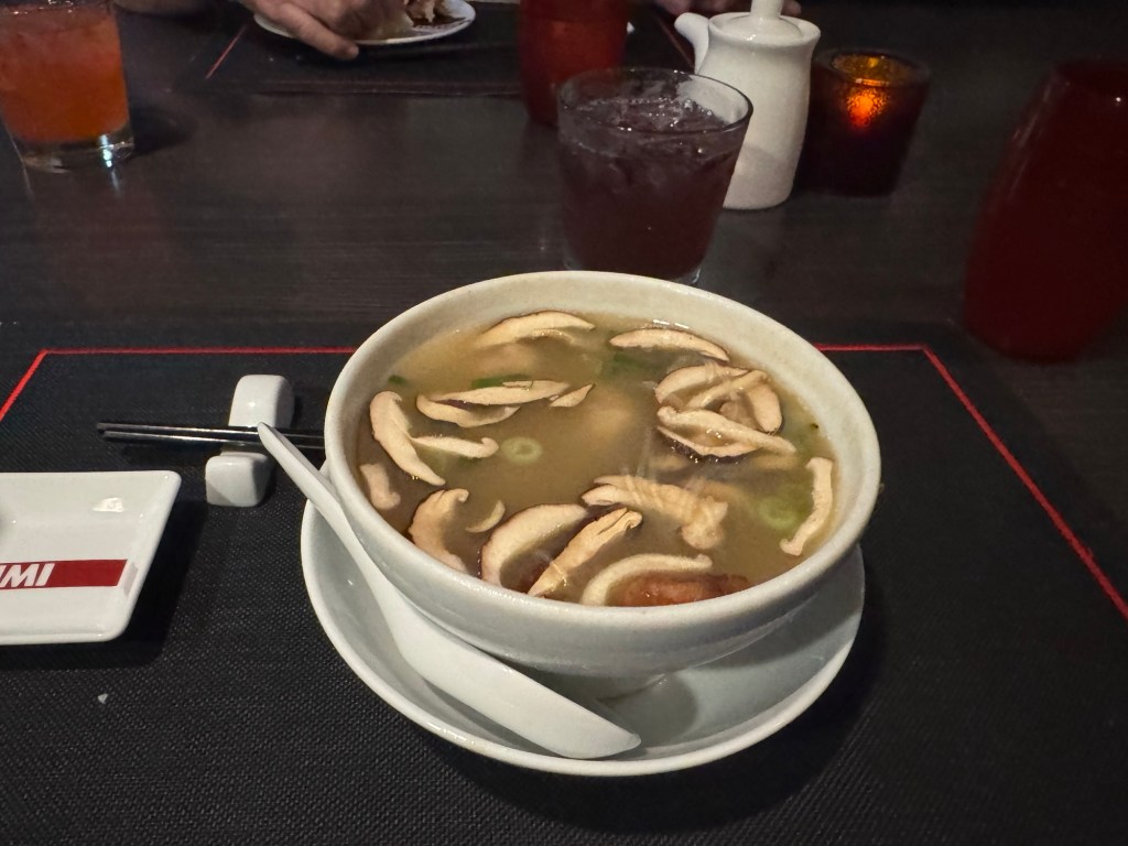 For food, Graham went with the crispy chicken kara-age, which consists of soy-ginger-mirin marinated thigh meat and is served with a sweet Thai chili sauce for his small plate. This is normally my choice, but I had my eye on one of the new additions. I had the Shrimp and Pork Wonton Soup, which was a clear chicken soup with shiitake mushrooms, scallions, and shrimp & pork wonton.