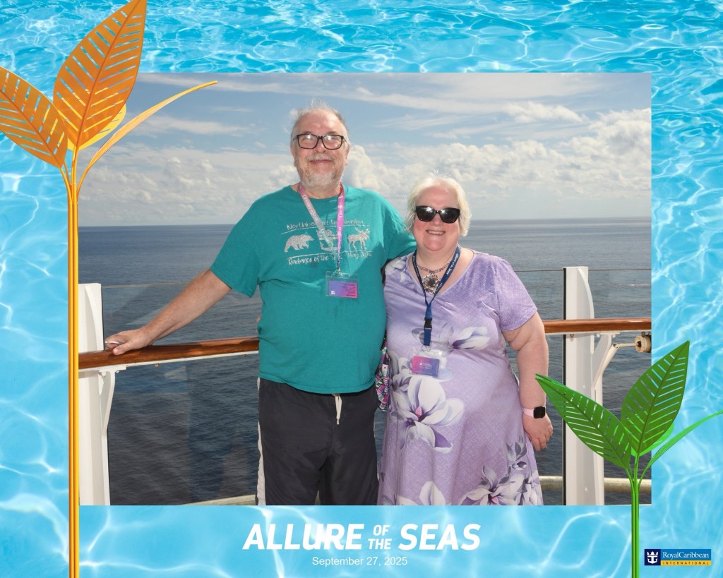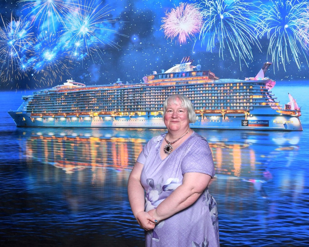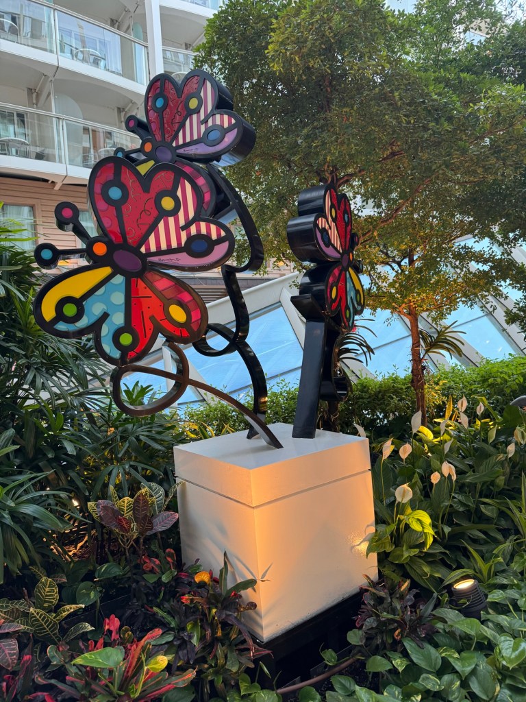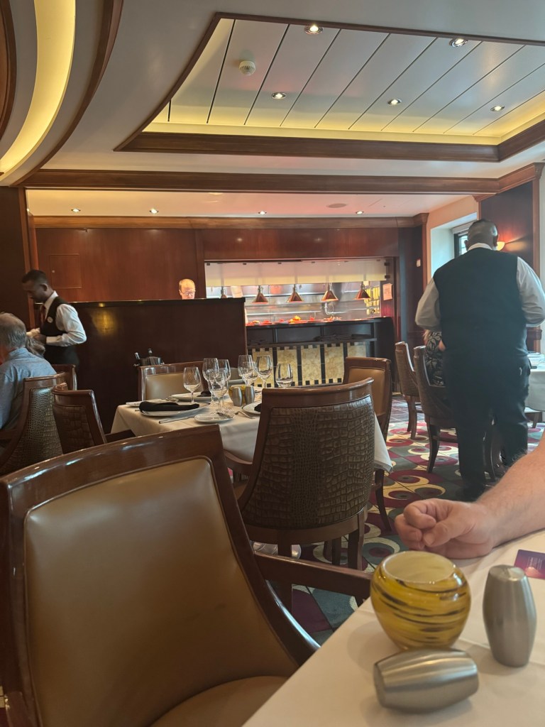 They had a t-shirt sale that day on the Royal Promenade. I was not really in the market for new t-shirts, but Graham had spotted a t-shirt with the Sagrada Familia on it. As I love everything designed by Gaudi, this was a serious temptation. I also found a t-shirt for Naples that I liked. The deal was for three t-shirts. Graham had a t-shirt that he got many years ago that said “Cruising Through Life One Port At The Time”. His t-shirt had seen better days, and I had not seen this on any of our cruises for years. They did have this design on the sales rack. I ended up getting those three t-shirts. I quickly took them back to the cabin and then I met up with Graham near the theatre.