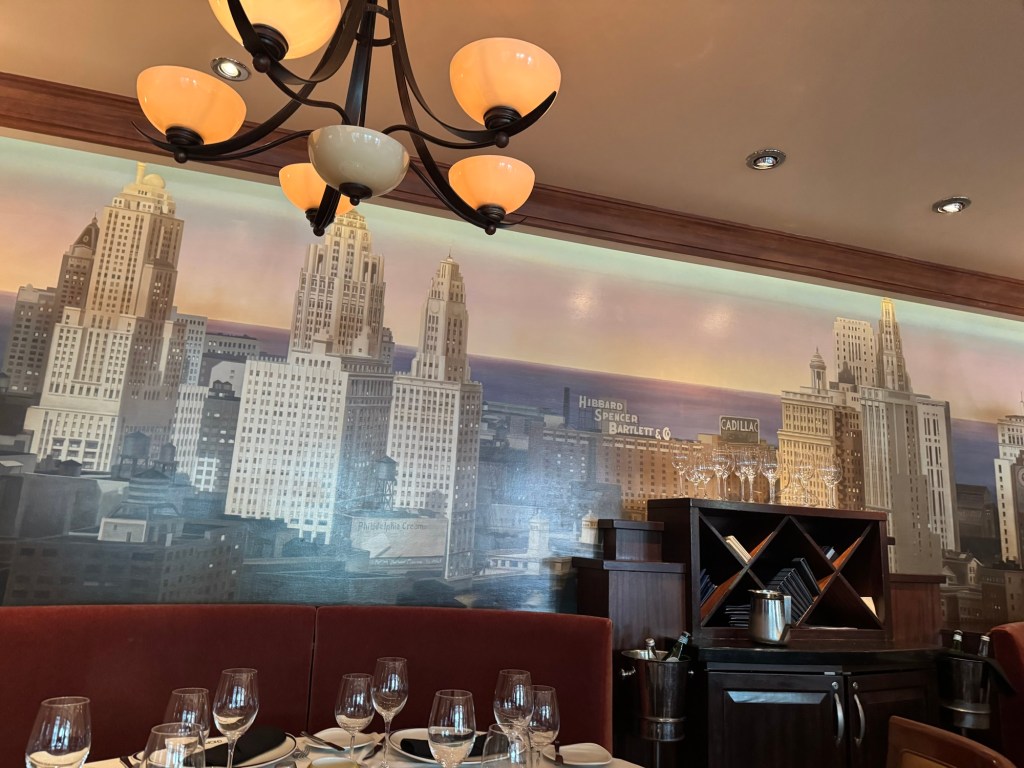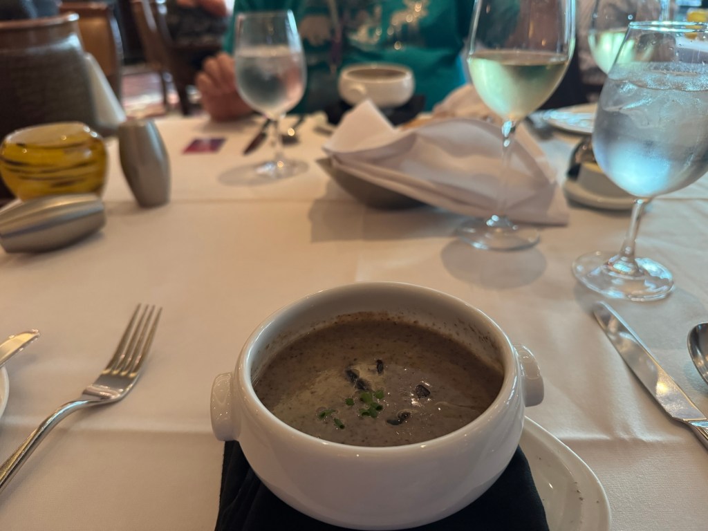 Soon it was time for lunch. We had a reservation for Chops. We both started with the wild mushroom soup scented with white truffle oil and garnished with chives. This is a longstanding favourite of mine. For his main course, Graham had the 8 oz Angus Filet Mignon with fries. I had the Chops Dry-Aged Steak Burger on a Brioche bun, with melted Gruyère, and smoked bacon. I had some fries on the side. This time it was me passing on dessert. Graham had the Key Lime Pie. We both felt that this concept has run its course and maybe it was time that Royal Caribbean introduced something fresh in its place.