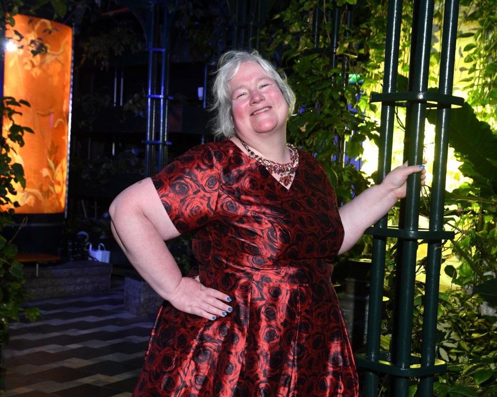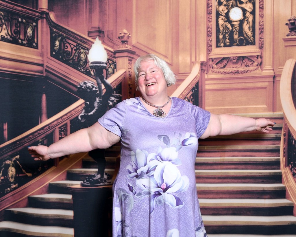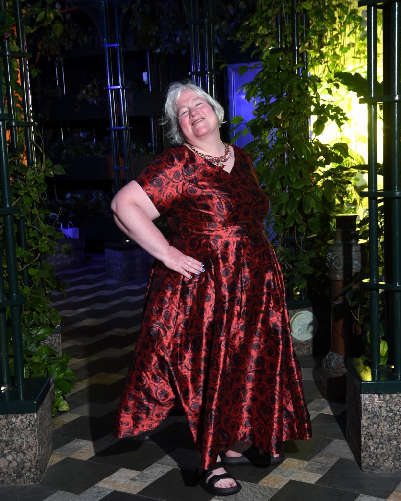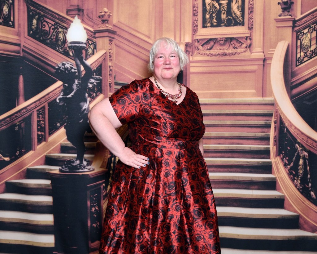 Because the ship interports, there are photo opportunities on all seven nights. Normally there are no more photos on the final night. I stopped by the backdrop on deck 5. I also wanted to check out of if there were any backdrops on our deck. There were actually two, but there were none on deck 4 that night. I took some photos with my daytime dress. The photographers tried to convince Graham to join me. He said that he would before we were going for dinner.