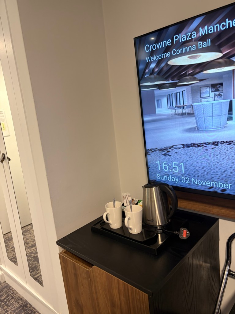 I had a productive day. At 16:00, my out of office went on and I headed across to the Crowne Plaza at Manchester airport. This used to be our go to hotel, but it was out of commission for years. It initially was a quarantine hotel during the pandemic and was then used to house asylum seekers. It recently had an extensive makeover and is now operating as a hotel again.
