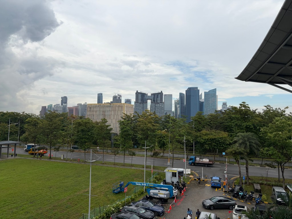 At some stage, it felt like we had an eternity in Singapore, but the last full day arrived all too quickly. We would have two more nights on Sentosa at the end of the holiday, but I was aware that this would be a different proposition from staying in the city. We were awake around 07:00 again. It looked dreary and wet that morning. We got up, ready and headed to breakfast. I was hoping for some more soup noodles, but they had switched back to seafood broth. I had some longans, dragon fruit and some congee with fried onions, fried shallots, and soy sauce. I also had some coffee and fruit punch. Graham had some salad and cold cuts, some fried egg on toast and some oatmeal. He also had orange juice and coffee.