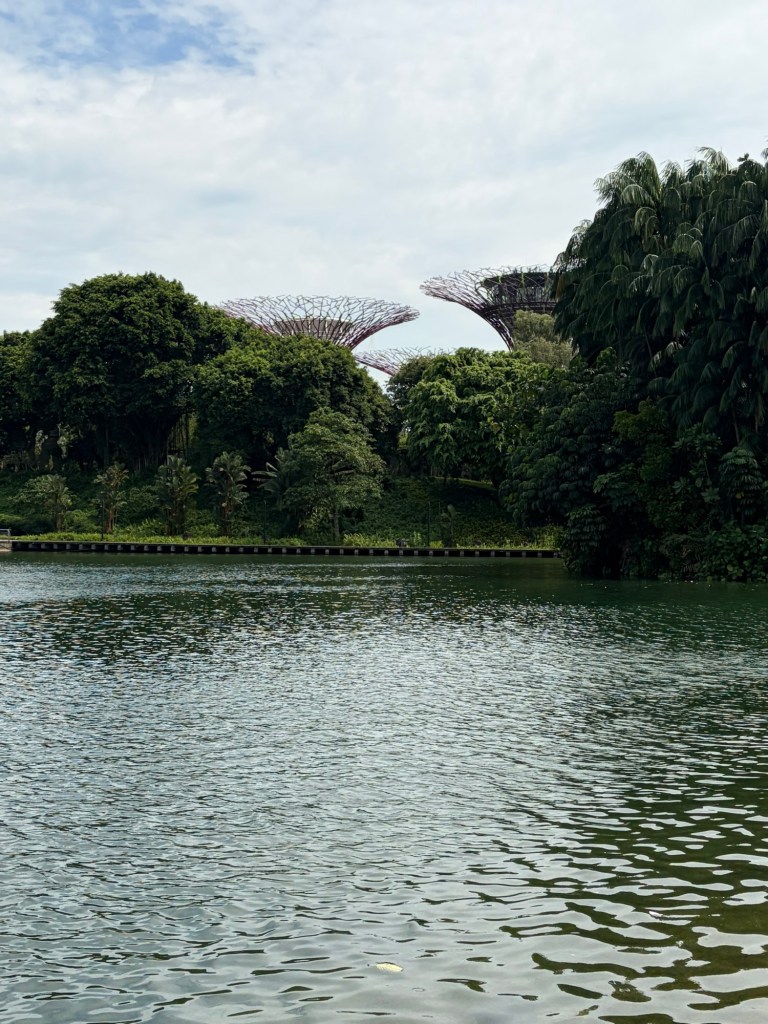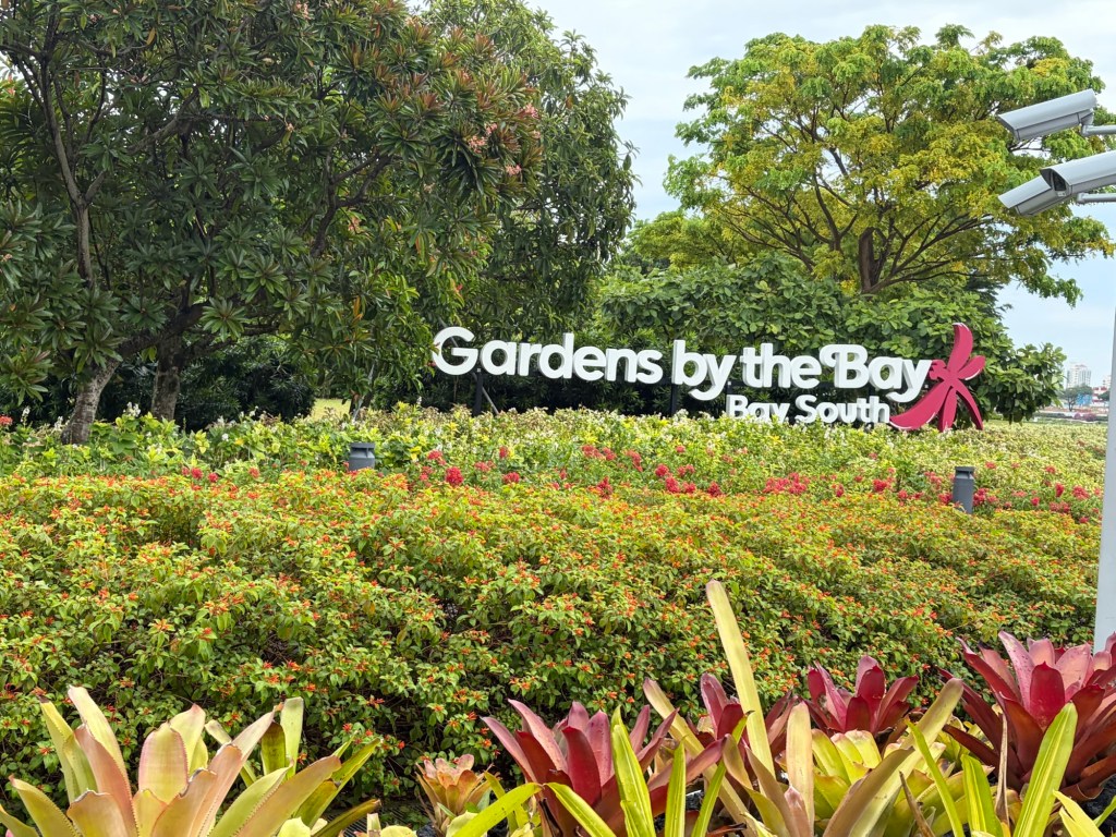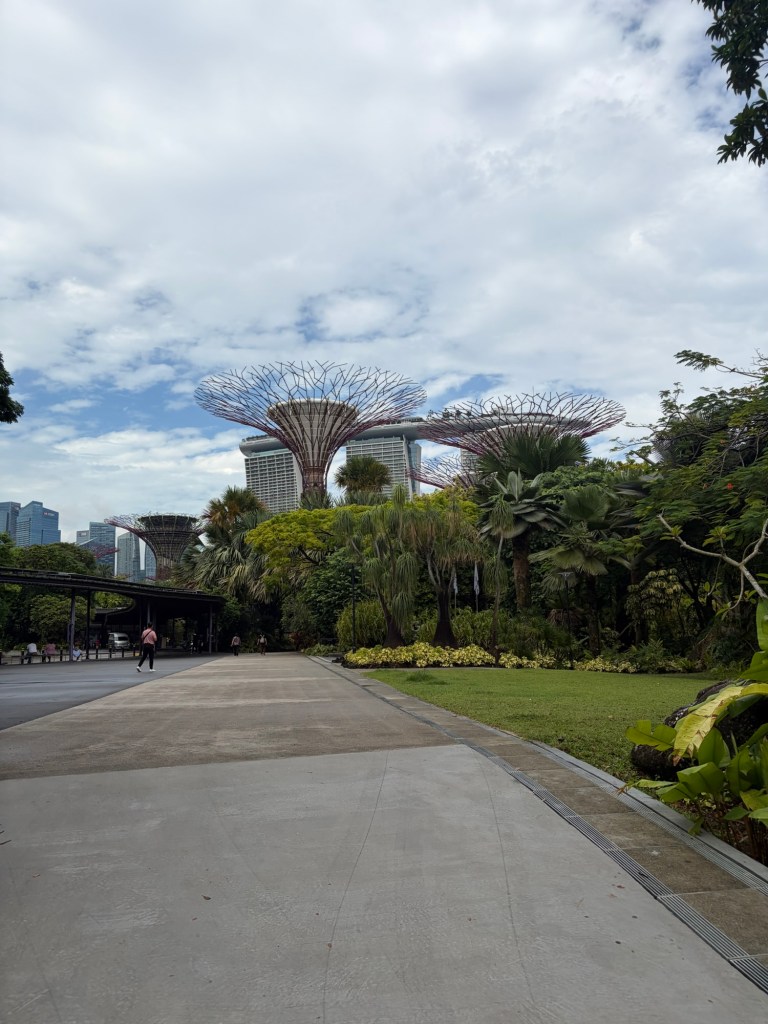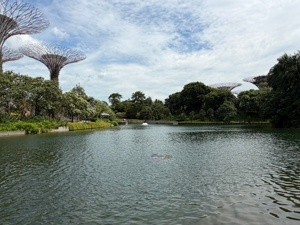 By the time we headed back to the MRT, the rain had thankfully stopped. We took the MRT for one stop and then we changed back to the Thomson East Coast Line, which took us straight to Gardens by the Bay. This is another station that did not exist in 2019. Indeed, this opened on the same day as the local station to the hotel did in November 2022. This makes getting to Gardens by the Bay from this part of Singapore so much easier. As soon as we came out of the MRT station, we saw the entrance to Gardens by the Bay. There were not many people around and we saw some parrots and a bird of prey. We also finally saw a monkey. We had expected to come across monkeys at the Botanic Garden, but this did not happen.