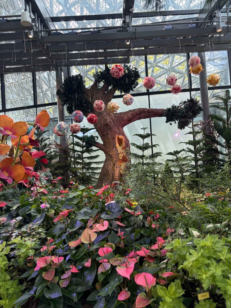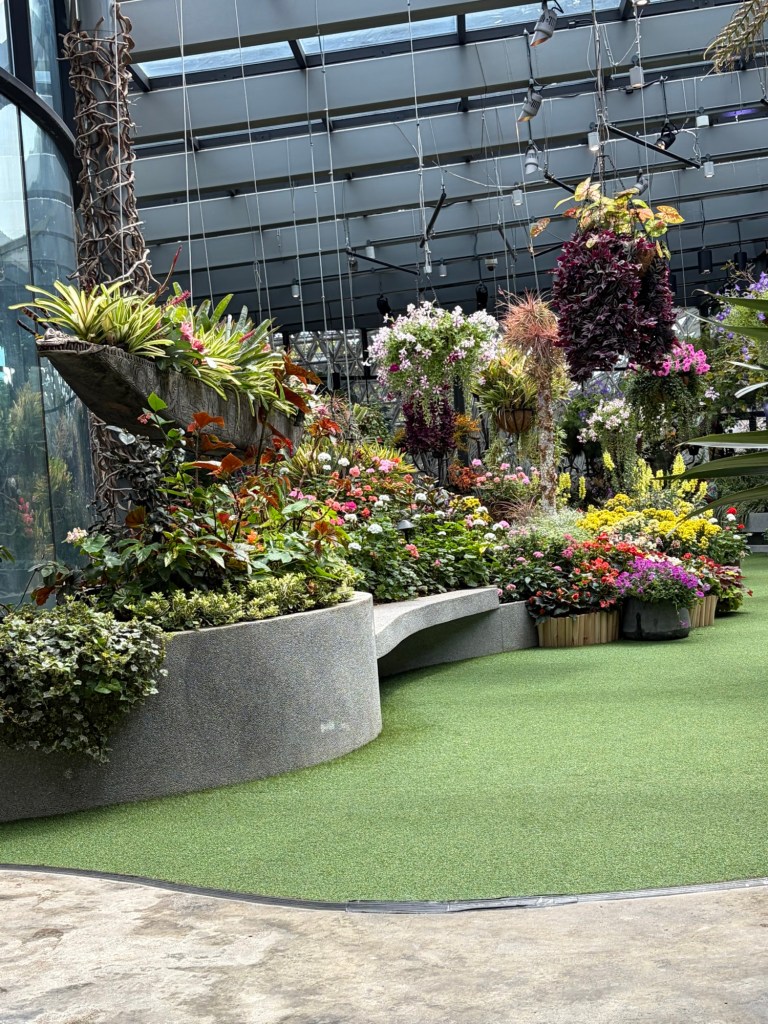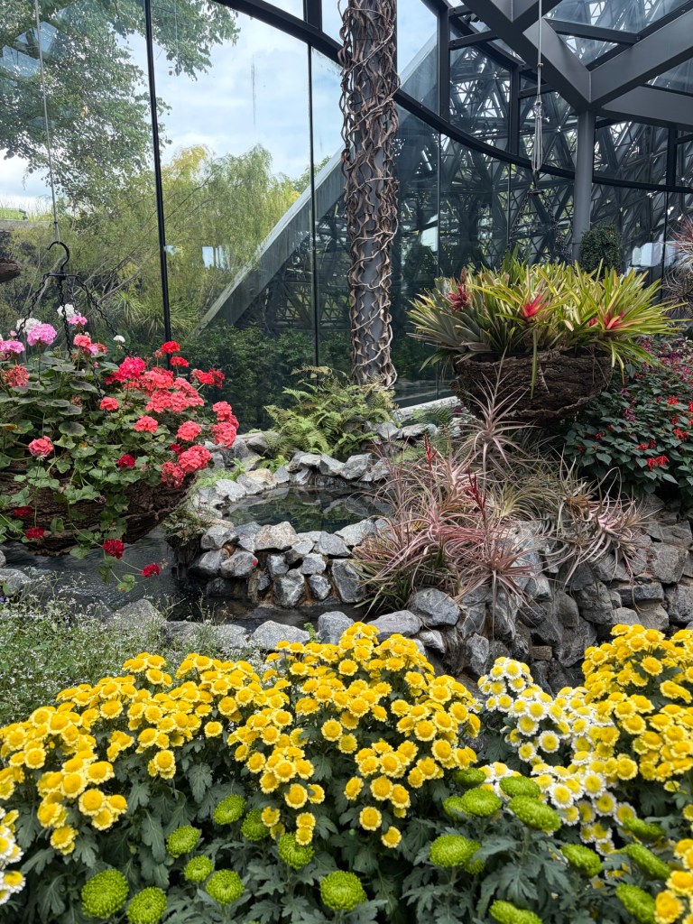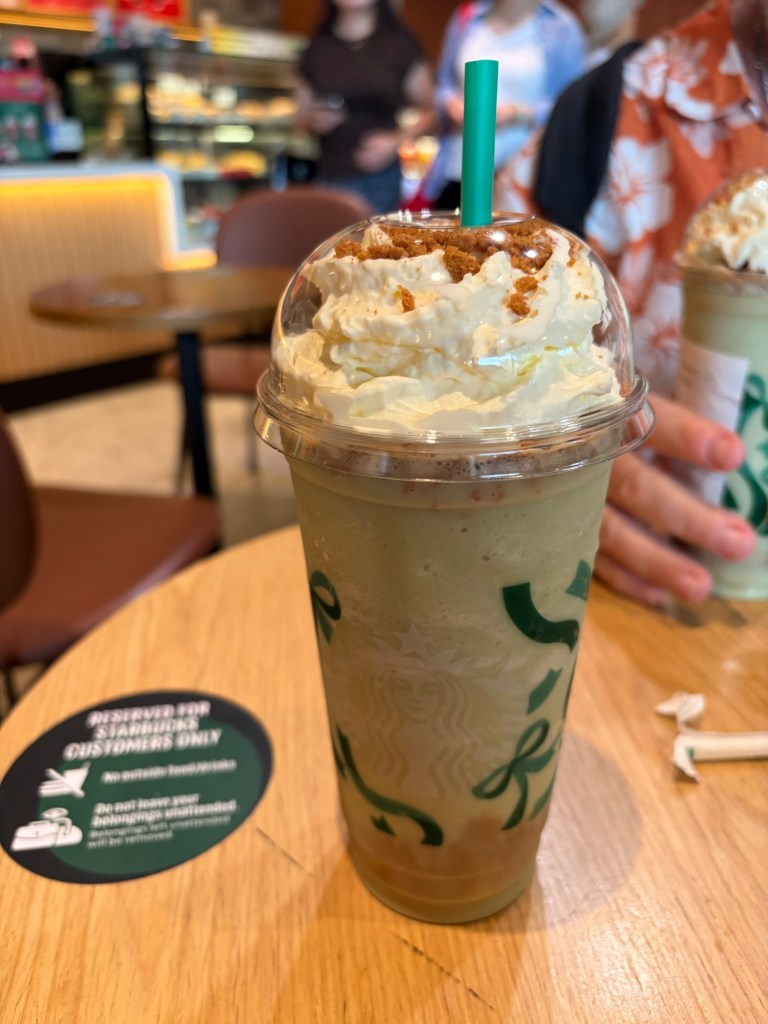 For the time being, we just skimmed this area. There is a central plaza near the Supertree Grove that has a gift shop, various food, and beverage outlets as well as huge map showing the whole of Gardens by the Bay. We had a look at the map to plan the rest of the day. Then we decided it was time for a drink. We went to Starbucks. They already had their holiday drinks. We both had a Pistachio Oat milk Coffee Frappuccino. This was delicious.