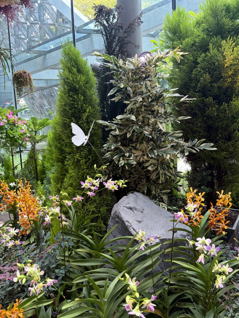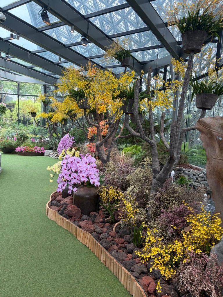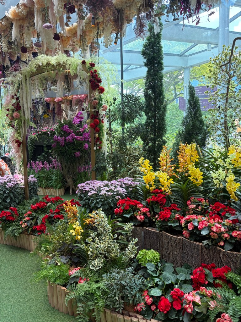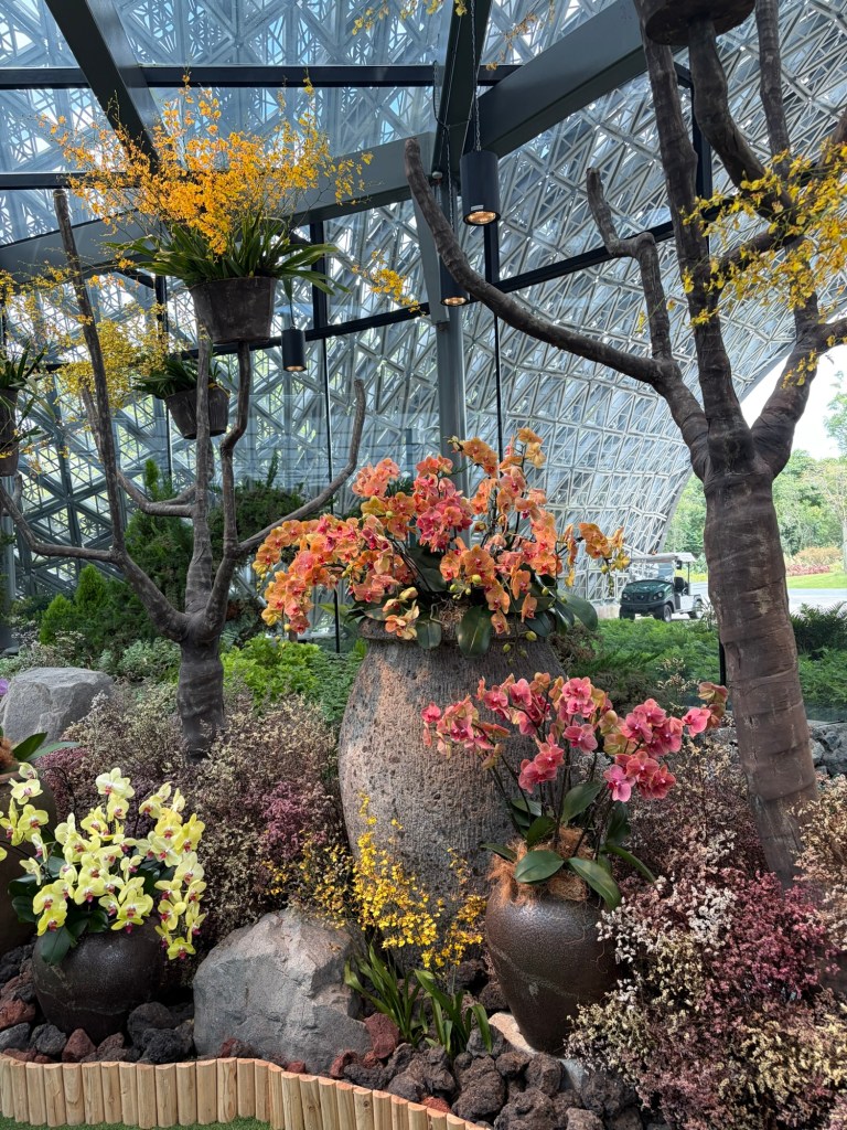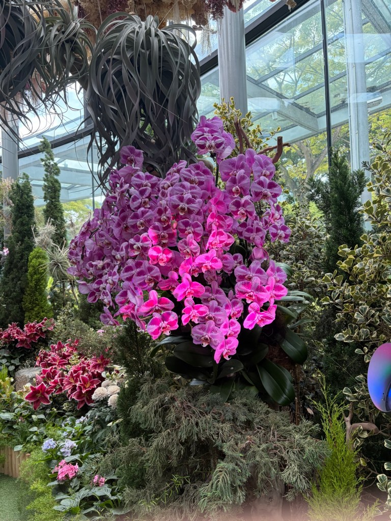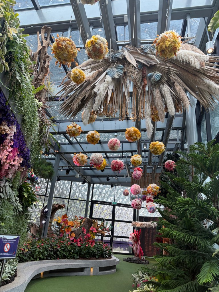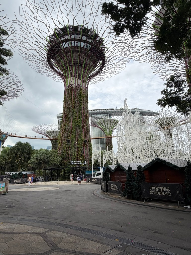 Once we had finished the tour, we headed for the centre of the Supertree Grove. There is an elevated walkway, the OCBC Skyway, between two larger Supertrees. The Supertree Observatory is housed inside the tallest Supertree. I had considered checking out both of them but ultimately decided against it. My main motivation had been the hope that I would be able to see Ovation and as I had already seen her, this was not really of interest anymore. Graham was happy to go along with whatever I decided. Instead, we pushed on towards Floral Fantasy. They were setting up for a Christmas event and some areas were fenced off, which meant that it took a little extra time to get to Floral Fantasy.