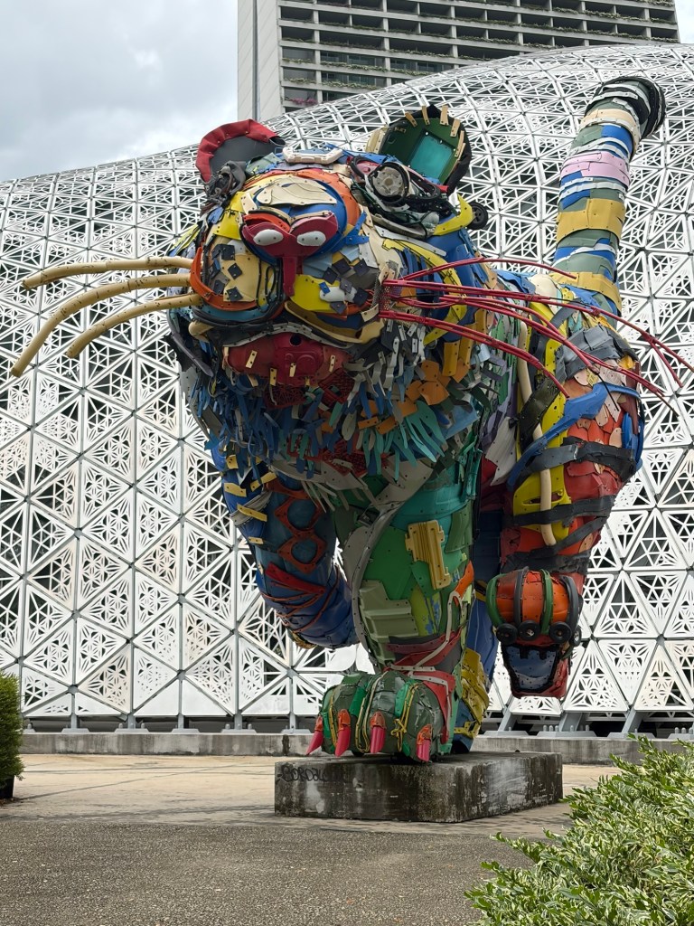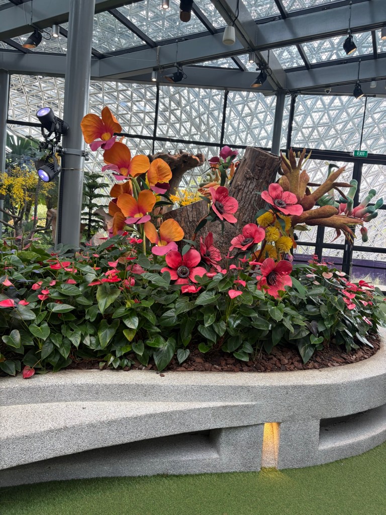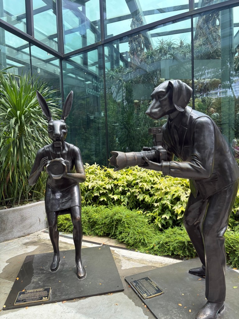 There were two statues outside Floral Fantasy. One was a very colourful tiger. The other, which was just outside the entrance really came as a surprise. A few of my trip reports have featured sculptures by Gillie and Marc featuring Rabbitwoman and Dogman. Whenever I go somewhere new, I check if there is one of their sculptures in the same way I check for Chihuly installations. Although I had struck gold with Chihuly, I could not find any evidence that there was a Rabbitwoman and Dogman statue in Singapore. I was more than a little surprised when I came round the corner and saw Rabbitwoman and Dogman. I have since found out that the statue is called The Wildlife Warriors. This was definitely a nice surprise.