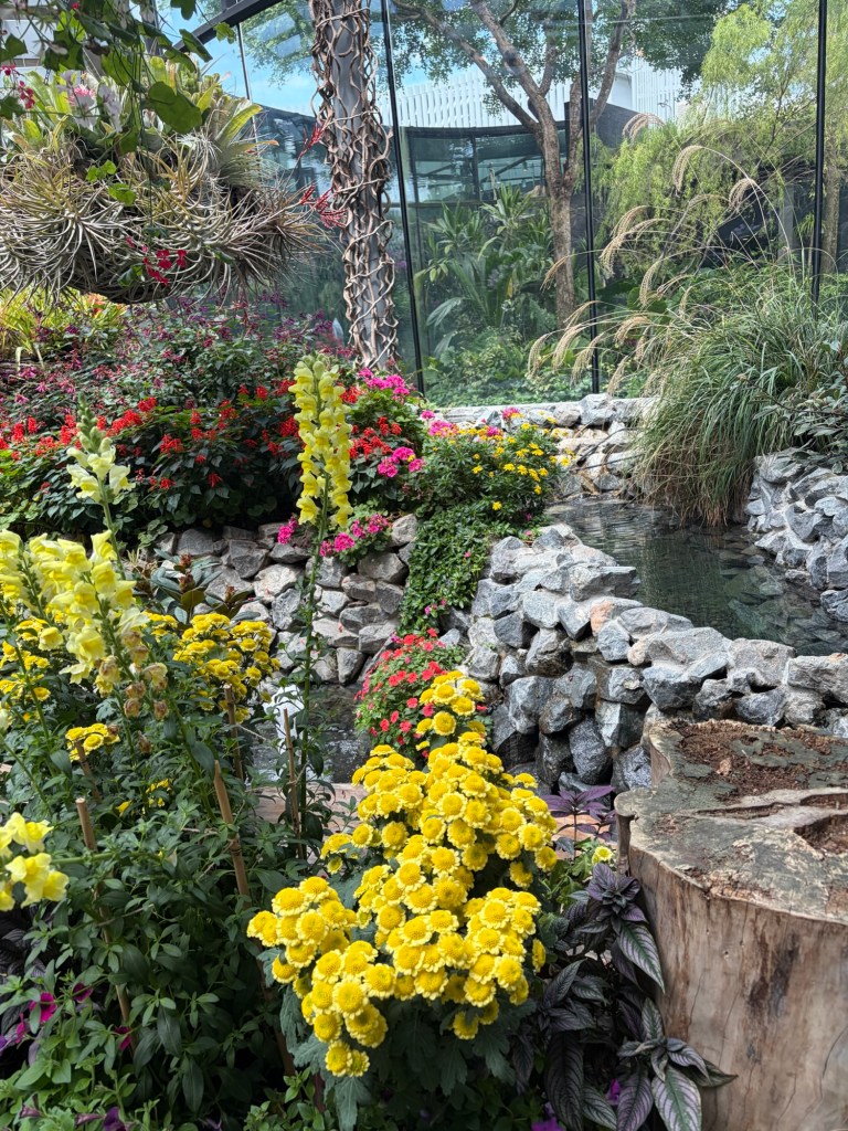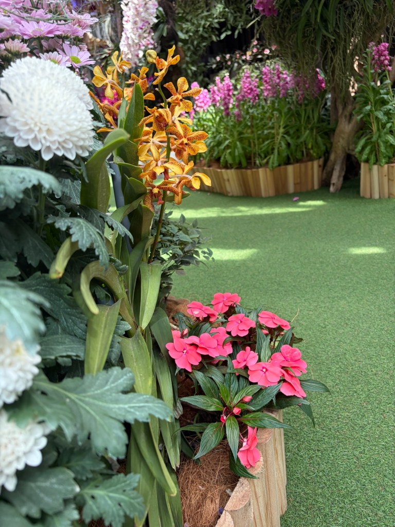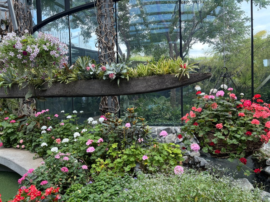 Once the show was over, we went back to where we had left off, which was at the beginning of Float. There was a river that runs through this area, and the plants are those that can be found near rivers. There were also some benches in the area. This looked a lot more natural, but still very colourful and pretty.