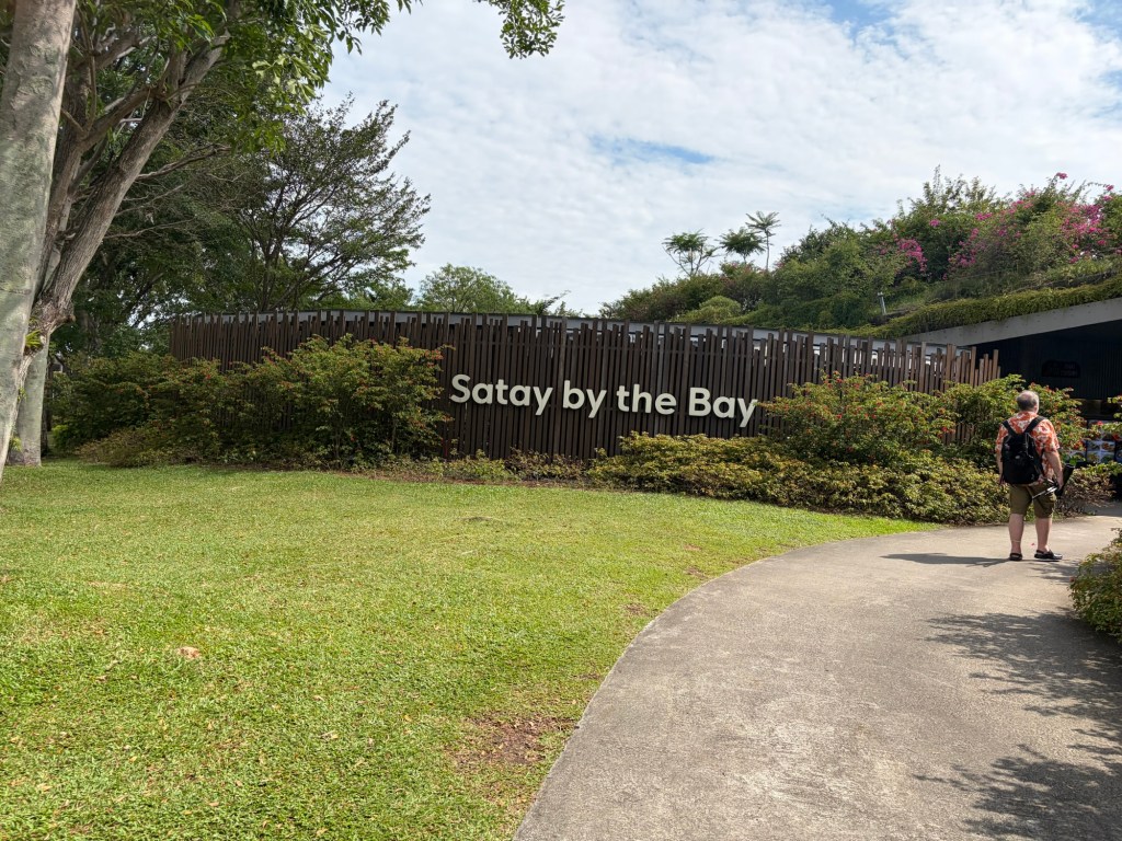 We walked along the Dragonfly Lake, which was another very picturesque area. This led us to the area outside the Flower Dome and Cloud Forest. I did have a look through the windows in the hope that the Chihuly installation would be visible from the outside, but this is such a huge building that this was hopeless. We moved on towards the Waterfront Promenade that ultimately leads to the Marina Barrage. This is quite a nice walk, but there was one specific reason why we were heading this way, which was Satay by the Bay.